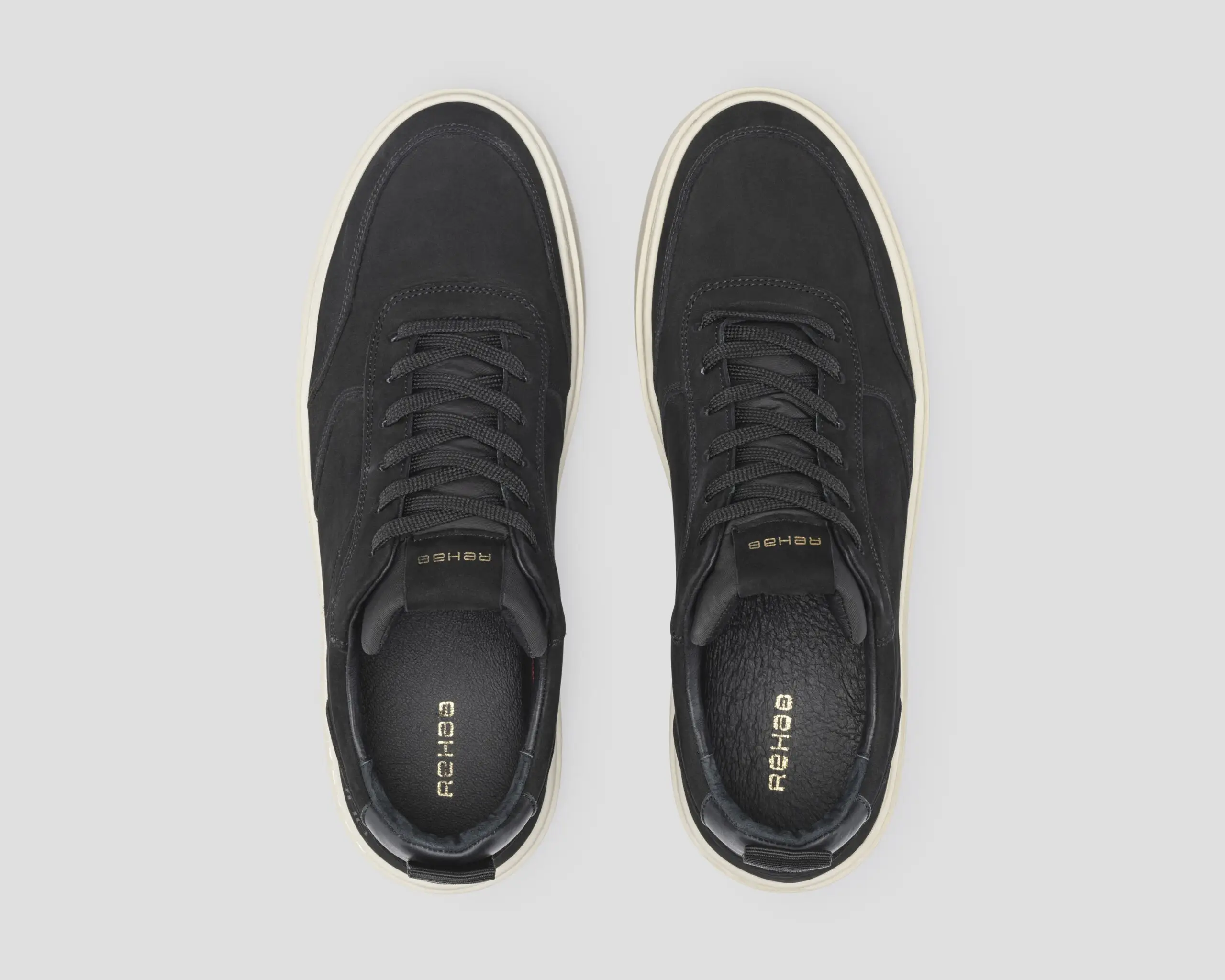 Premium lage zwarte sneakers gemaakt van een mooie kwaliteit nubuck en een minimalistische zool voorzien van een comfortabele uitneembare binnenzool. Verrassende details bij de Oliver zijn de nylon tong en het subtiele REHAB logo op de zool. De Oliver kan perfect gecombineerd worden met een mooie jeans of chino.