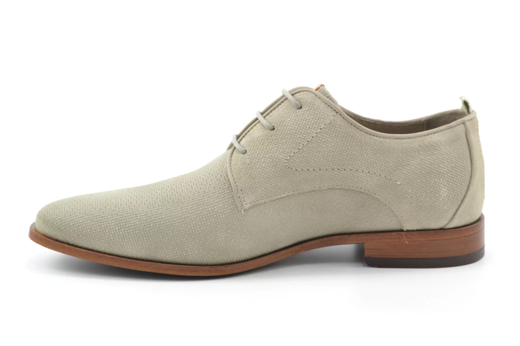 Klassieke nette herenschoen met een moderne twist. Handgemaakt in Portugal van hoge kwaliteit suede voorzien van een subtiele textuur en uitgevoerd in een mooie zand kleur. Uiteraard is deze nette veterschoen voorzien van een uitneembare binnenzool en onze comfortabele zool.