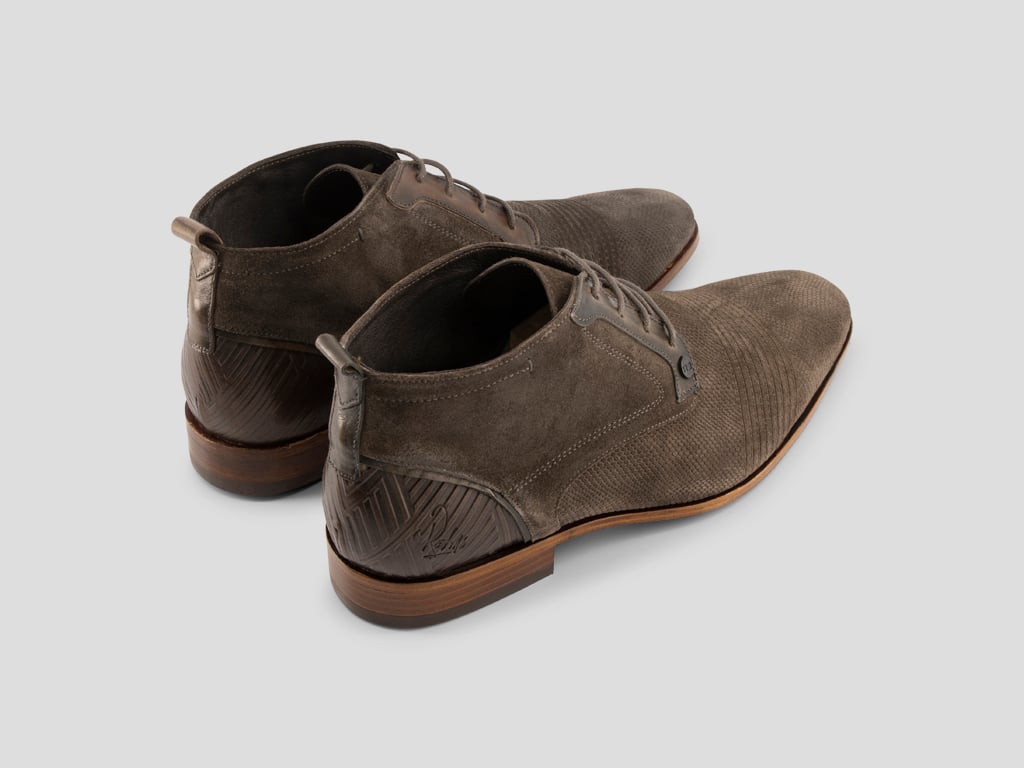 Grijs/bruine halfhoge nette veterschoen gemaakt van mooie kwaliteit leer en suède voorzien van verschillende prints. De Grand past perfect onder een mooie jeans voor een casual zakelijke look.