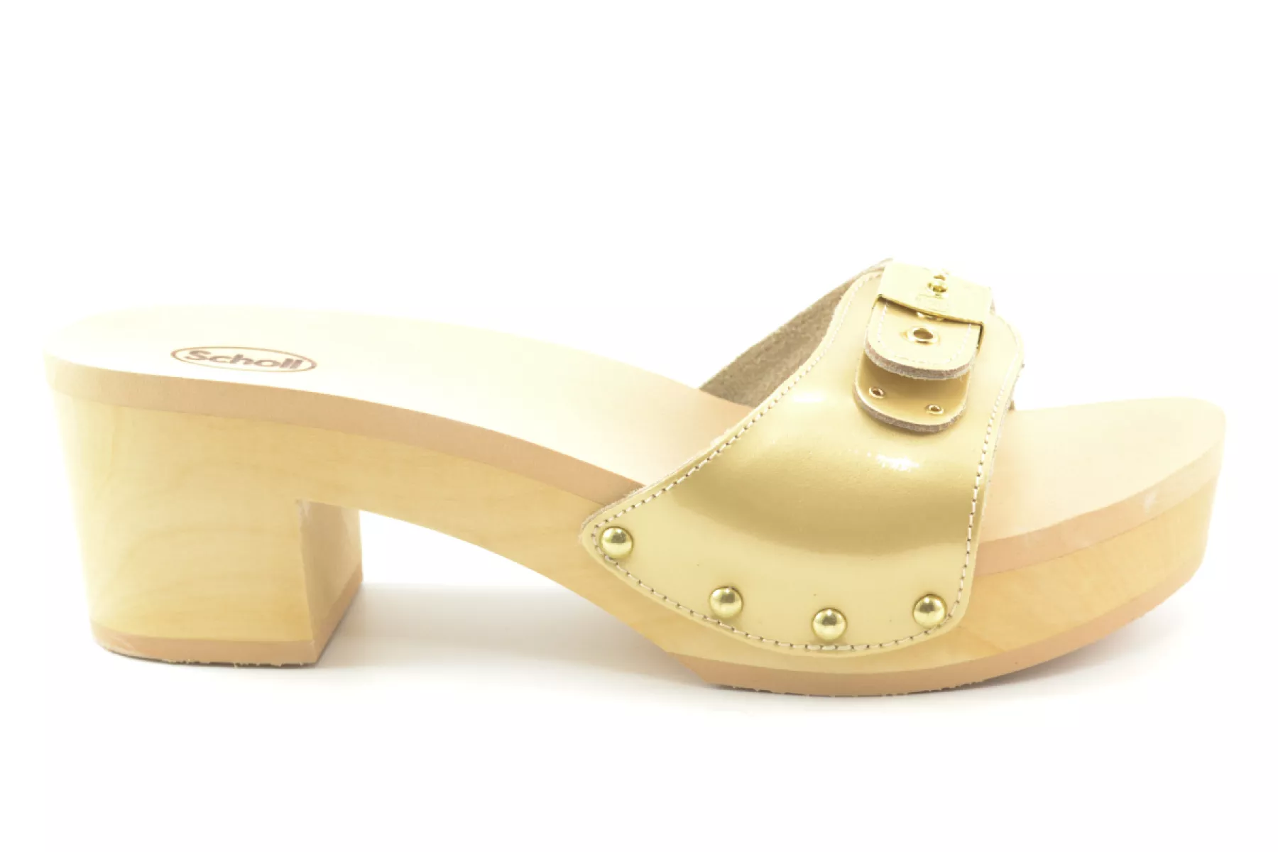 Scholl clogs hak Pescura Ibiza lightgold lak