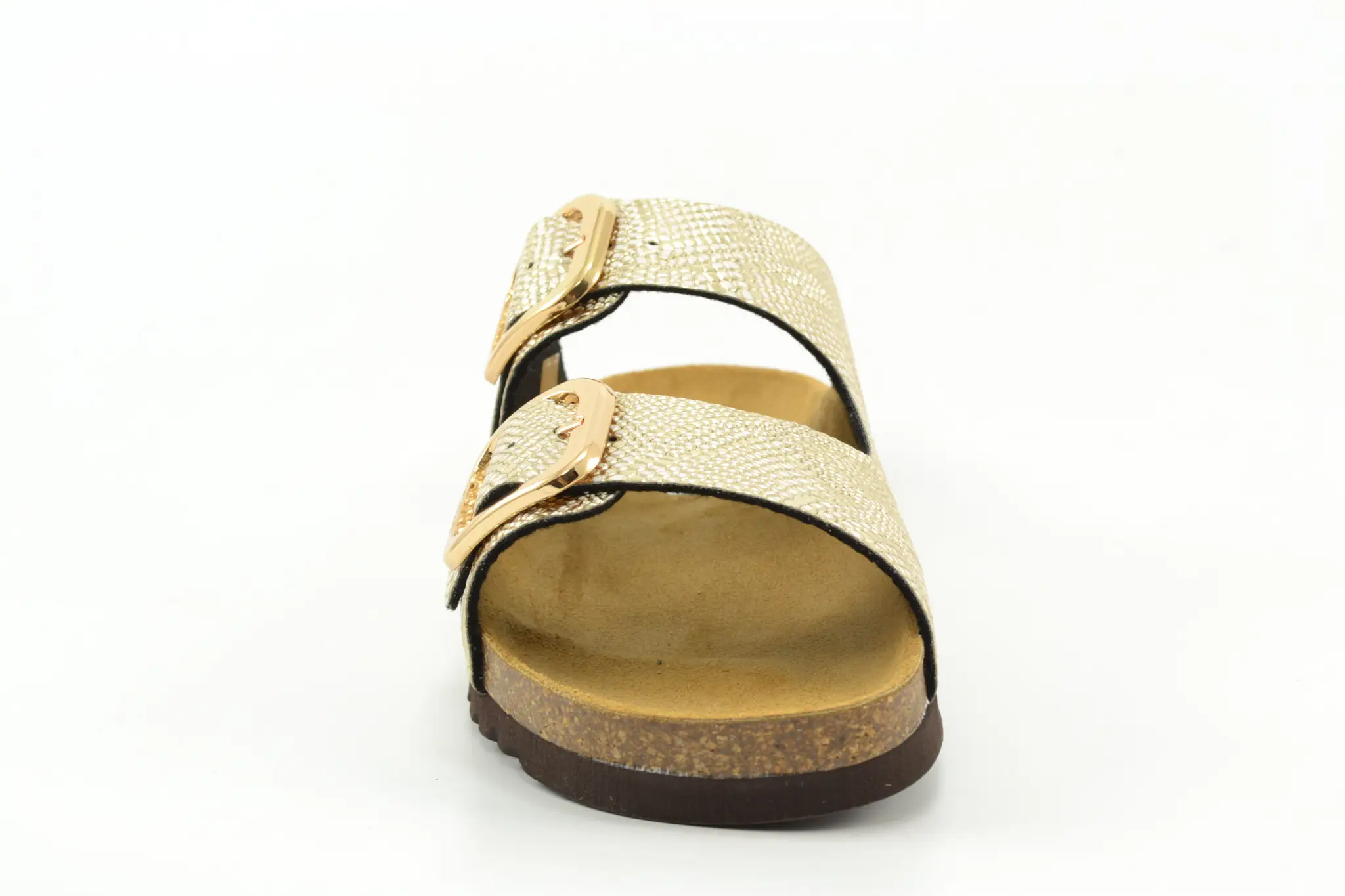sluiting: 2 verstelbare banden met goudkleurige gespen