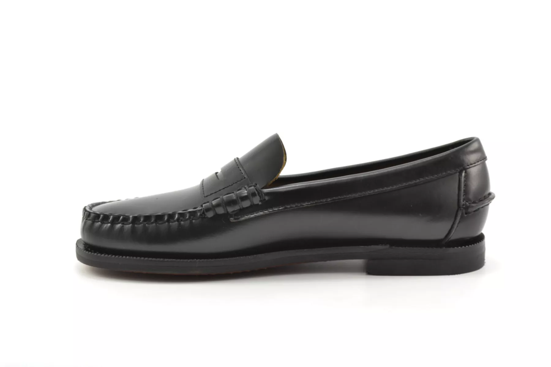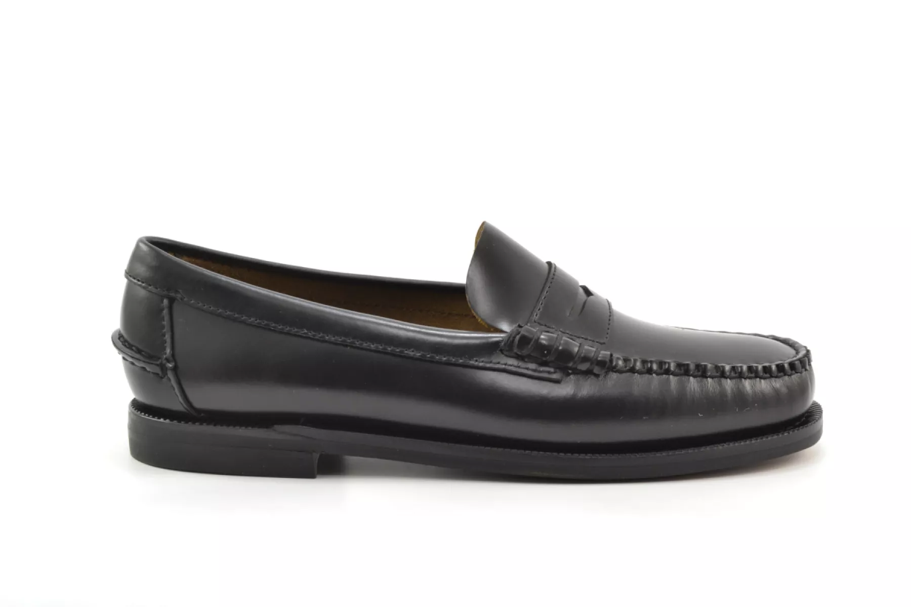 Deze instappers in de vorm van een beefroll penny loafer zijn gemaakt van glad, gecorrigeerd nerfleder dat de tand des tijds doorstaat en met de hand gestikt met het fijnste vakmanschap. Ze hebben een ongevoerde bovenkant, een leren binnenzool en een waterdichte, flexibele en duurzame zool van natuurlijk leer met een voorgevormde rubberen hak. De “Dan” loafers zijn een eerbetoon aan de passie van de oprichters van Sebago.