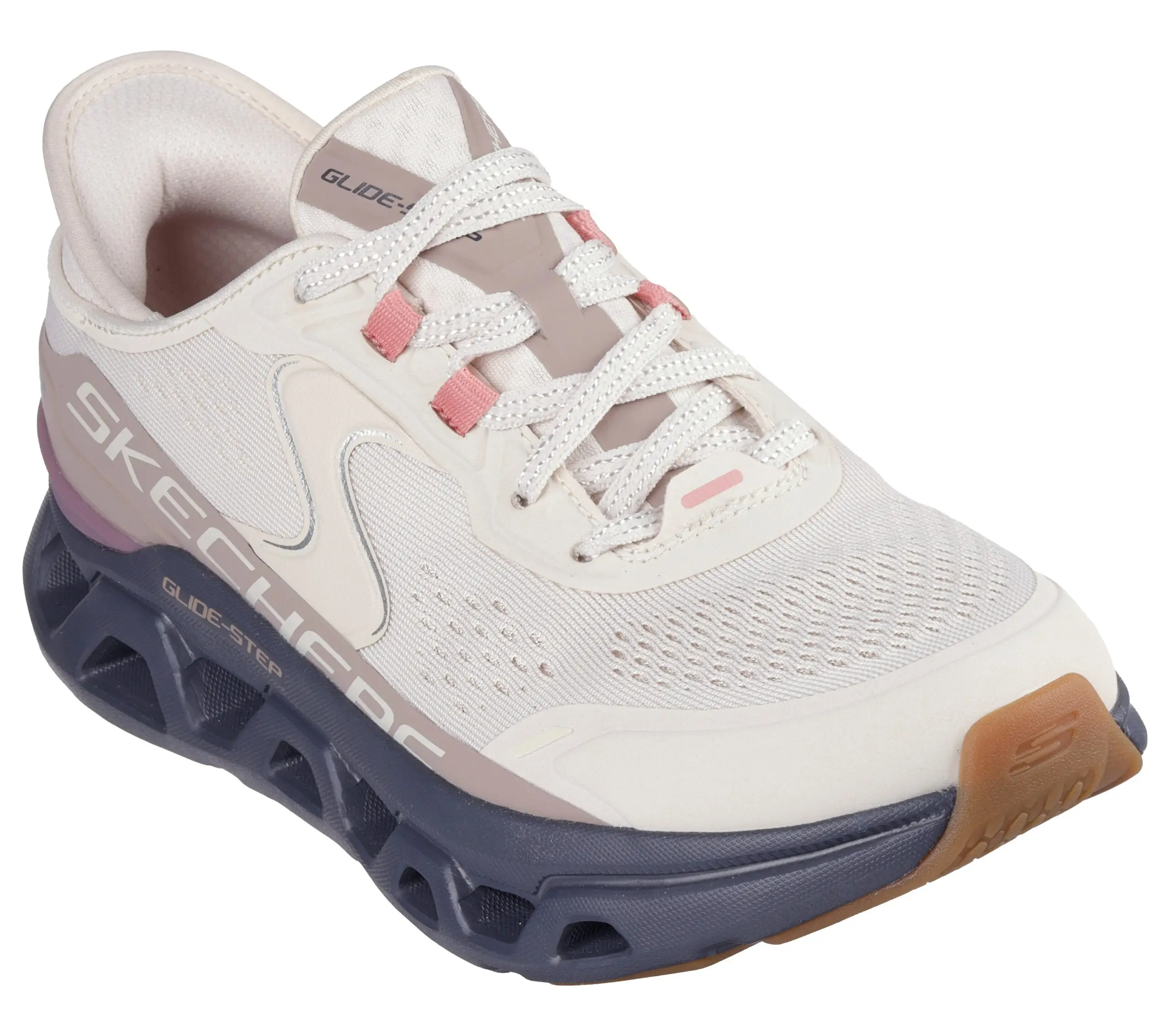 ontworpen met onze exclusieve Heel Pillow en heeft een Stretch Fit®-bovenwerk van technische mesh met elastische veters op een comfortabele Skechers Air- Cooled Memory Foam-binnenzool en een dempende, geometrische Glide-Step- tussenzool.