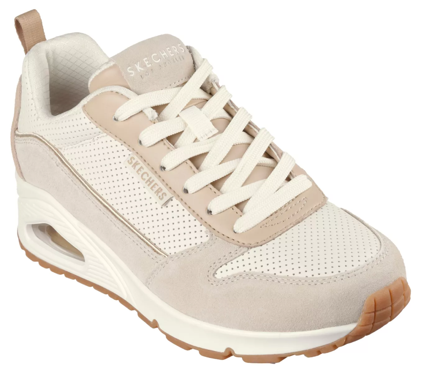 Toon je favoriete kleuren en texturen in een klassiek design met de Skechers Street Uno – 2 Much Fun. Deze trendy sneaker met veters heeft een bovenwerk in colourblockstijl van echte suède en geperforeerd duraleer op een Skechers Air- Cooled Memory Foam-binnenzool en een Skech-Air-tussenzool met zichtbare air- unit.