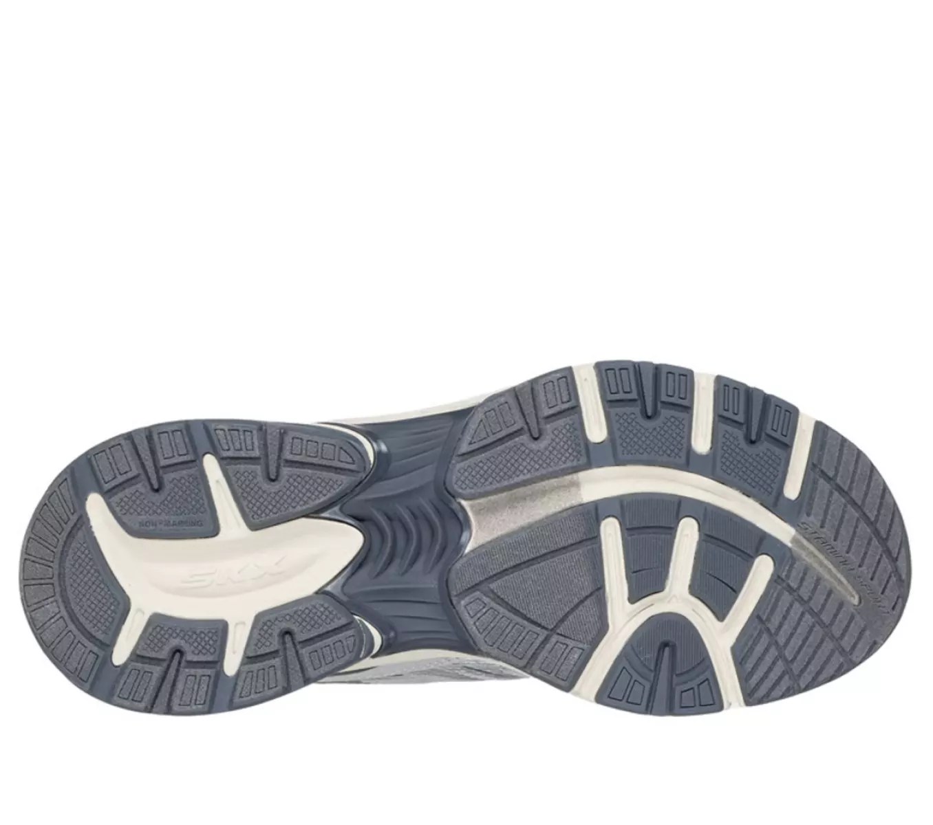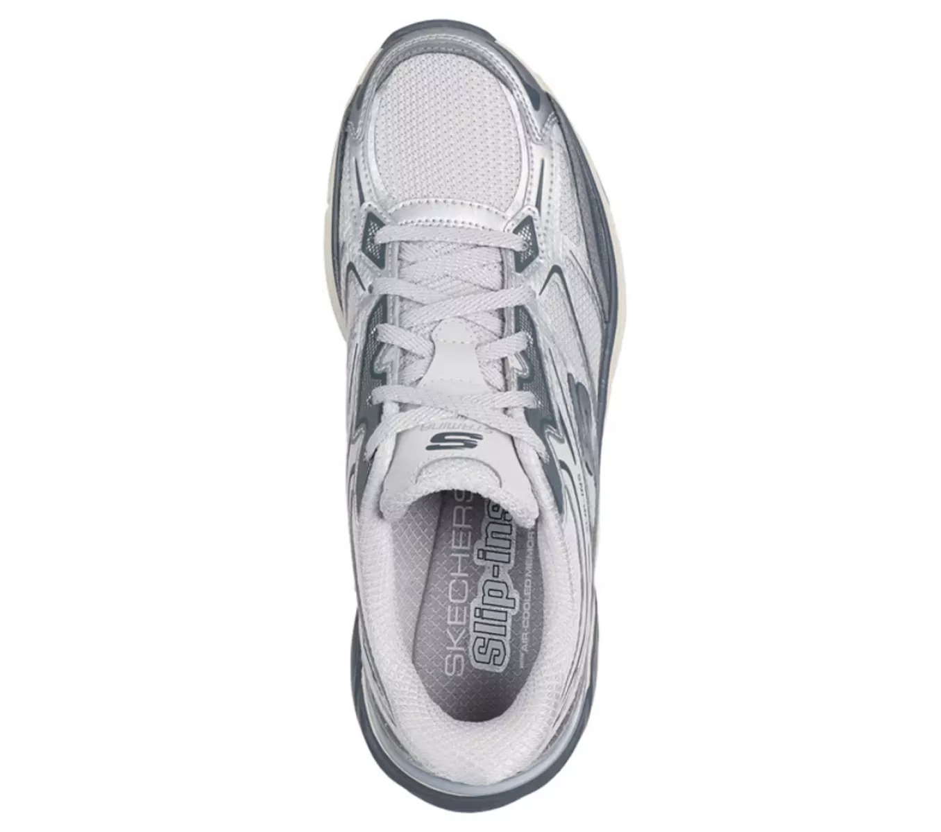 ons exclusieve Heel Pillow, een bovenwerk van mesh met leer en synthetische overlays en een gewatteerde Skechers Air-Cooled Memory Foam™ binnenzool.
