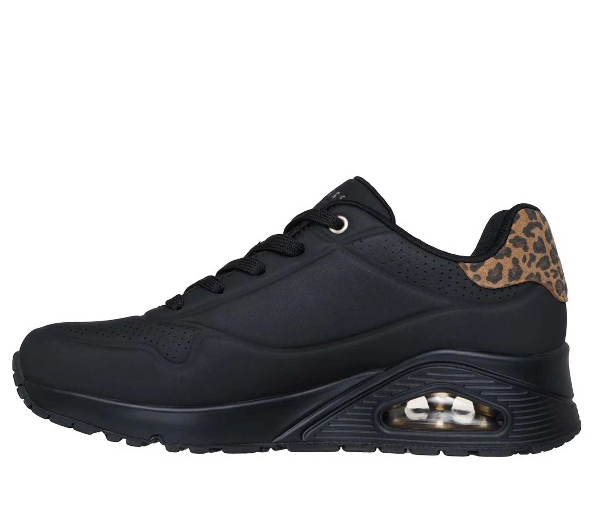 Loop op lucht in de ongetemde, maar zo comfortabele Skechers Street™ Uno – Jungle Nite. Deze trendy vetersneaker heeft een synthetisch bovenwerk van een luipaardprint op het hielstuk en is voorzien van Skechers Air-Cooled Memory Foam™ binnenzool en een Skech-Air-tussenzool met zichtbare luchtdemping.