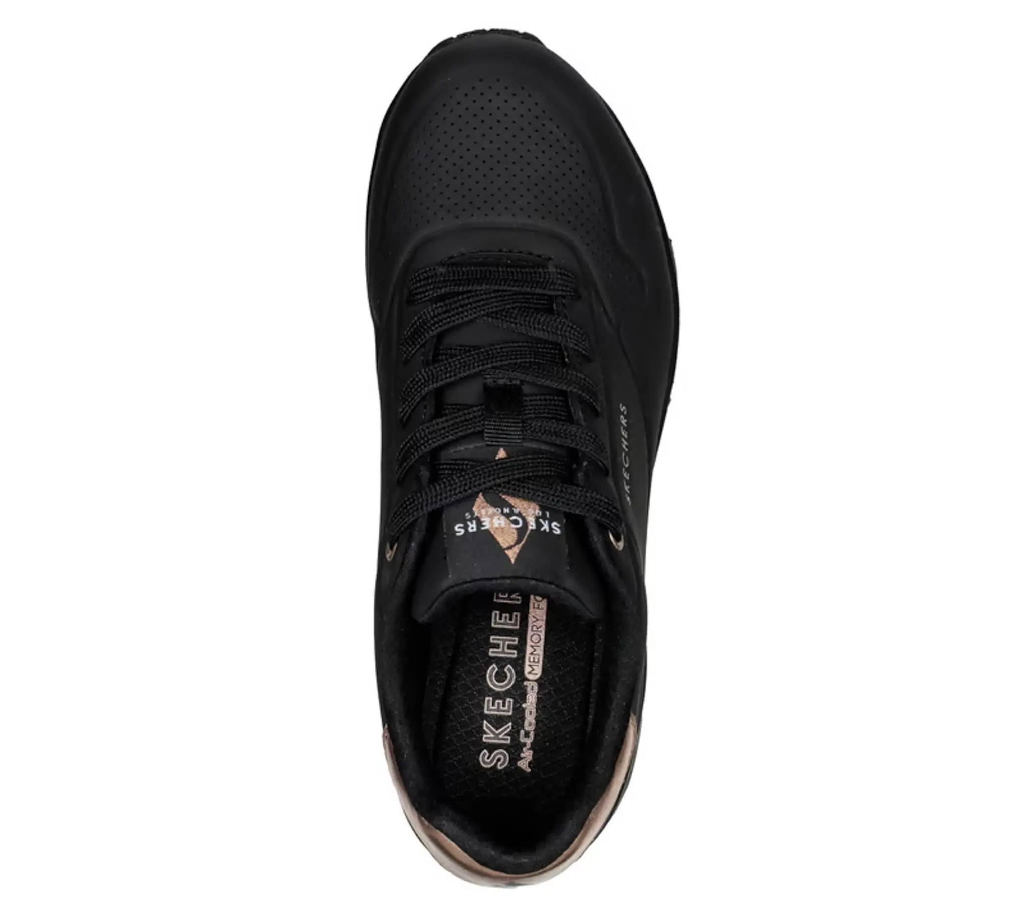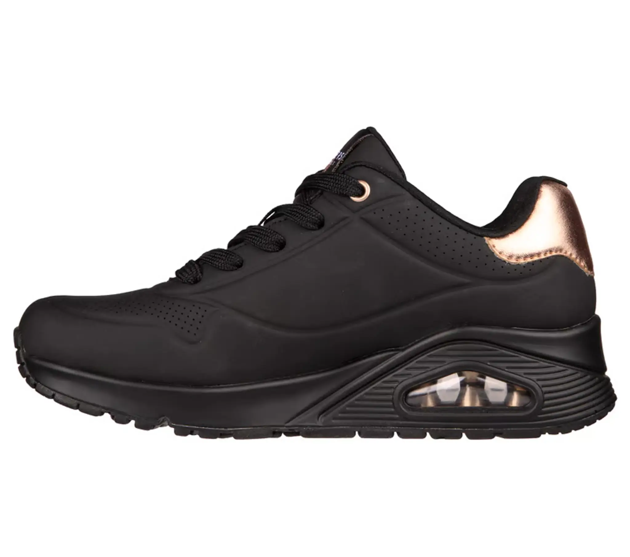 Ga voor goud en geef je stijl een boost met Skechers Street™ Uno – Golden Air. Deze hippe schoen met veters heeft een soepele durabuck bovenkant met gouden accenten, een comfortabel gewatteerde Skechers Air Cooled Memory Foam®- binnenzool en een zichtbare Skech-Air®-tussenzool met air-unit.