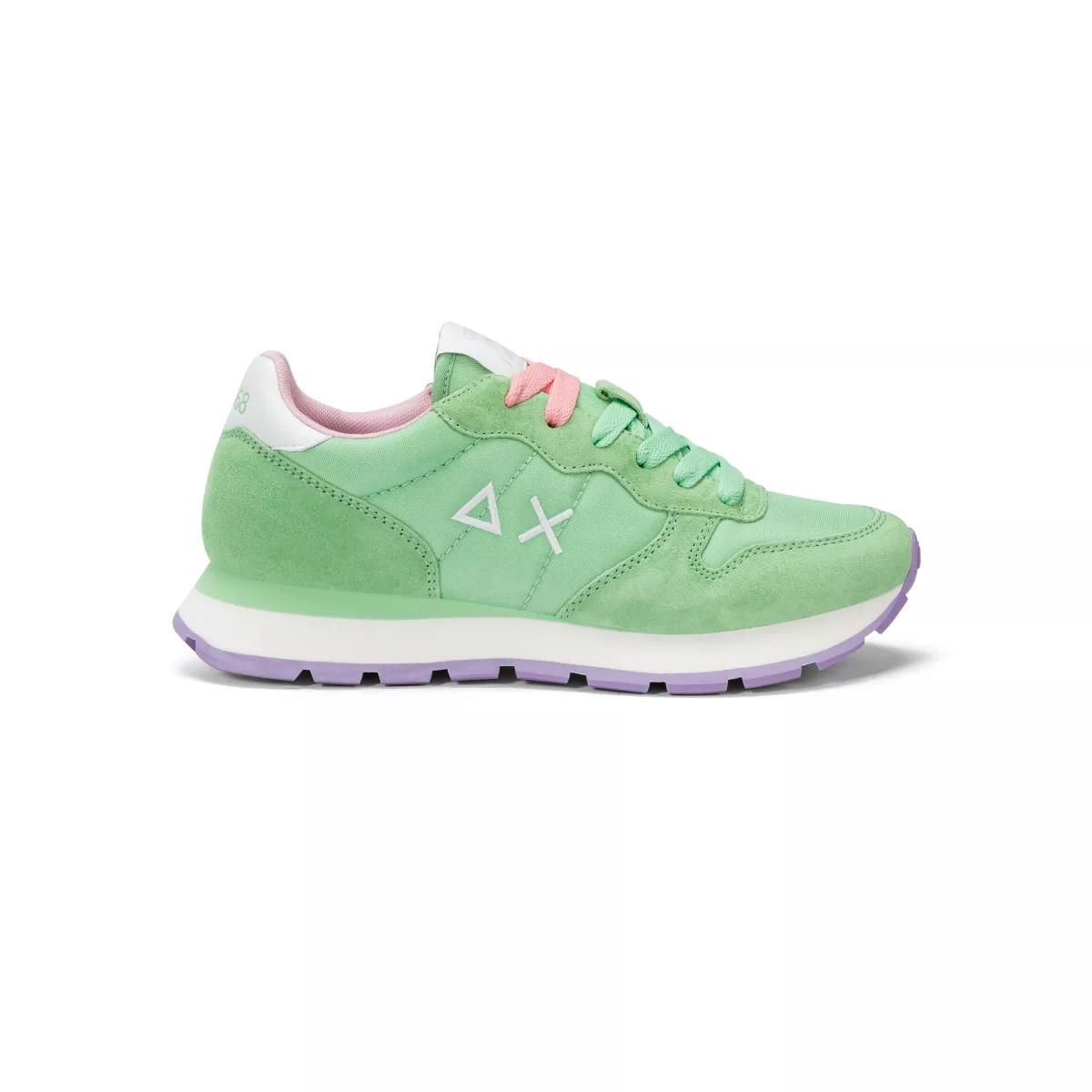 SUN68 is een Italiaans modemerk met casual designs. Dit model is uitgevoerd in canvas met suede overlays. De tong en fluor-accenten springen lekker in het oog en de geborduurde merkopdruk op de zijkant geeft deze sneaker zijn unieke look. De witte oplopende zool heeft een zwarte loopzool met gripvast profiel. Deze sneakers worden geleverd met extra katoenen veters