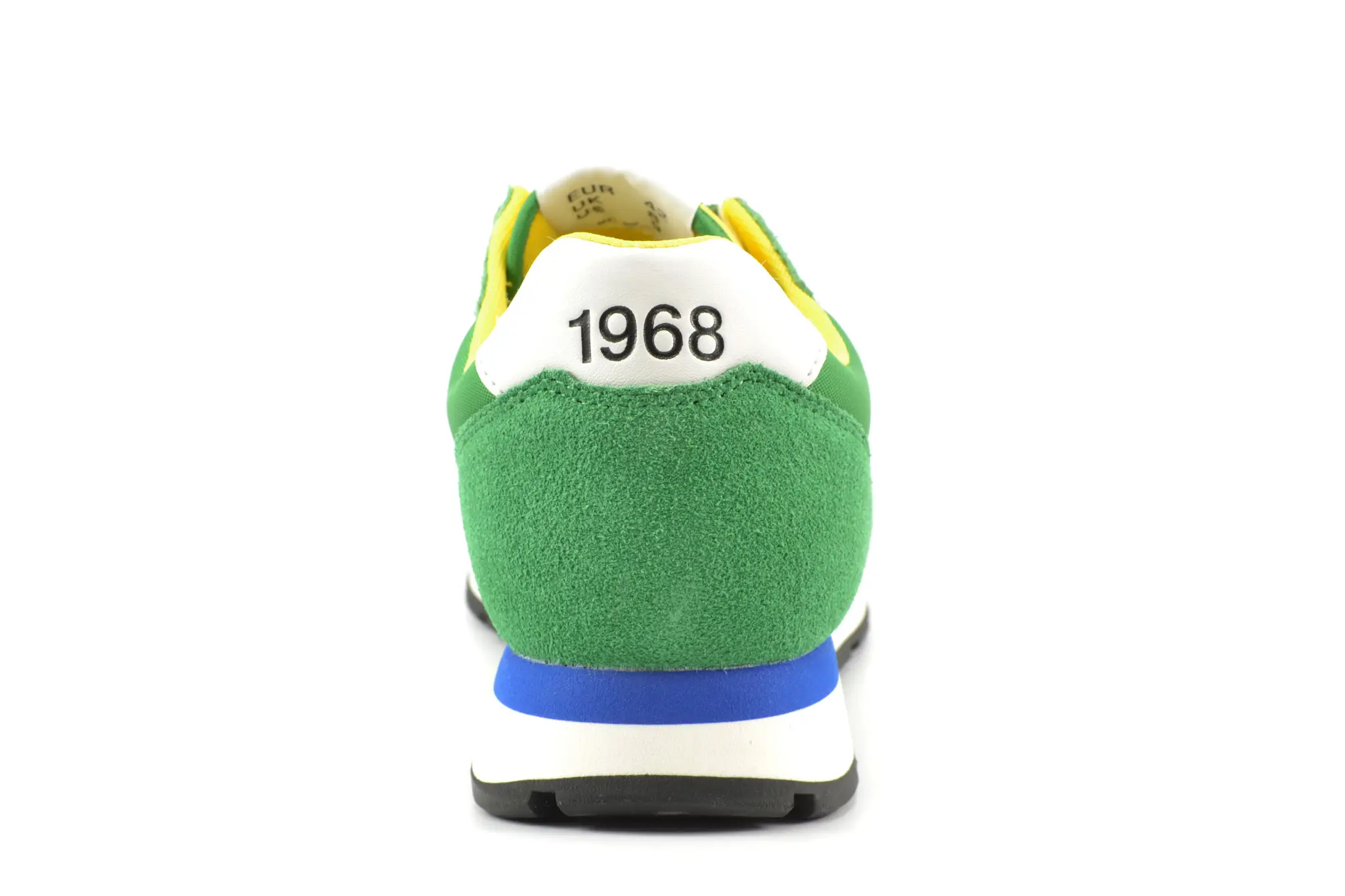 SUN68 is een Italiaans modemerk met casual designs. Dit model is uitgevoerd in canvas met suede overlays. De gele tong en accenten springen lekker in het oog en de geborduurde merkopdruk op de zijkant geeft deze sneaker zijn unieke look. De witte oplopende zool heeft een zwarte loopzool met gripvast profiel. Deze sneakers worden geleverd met extra katoenen veters