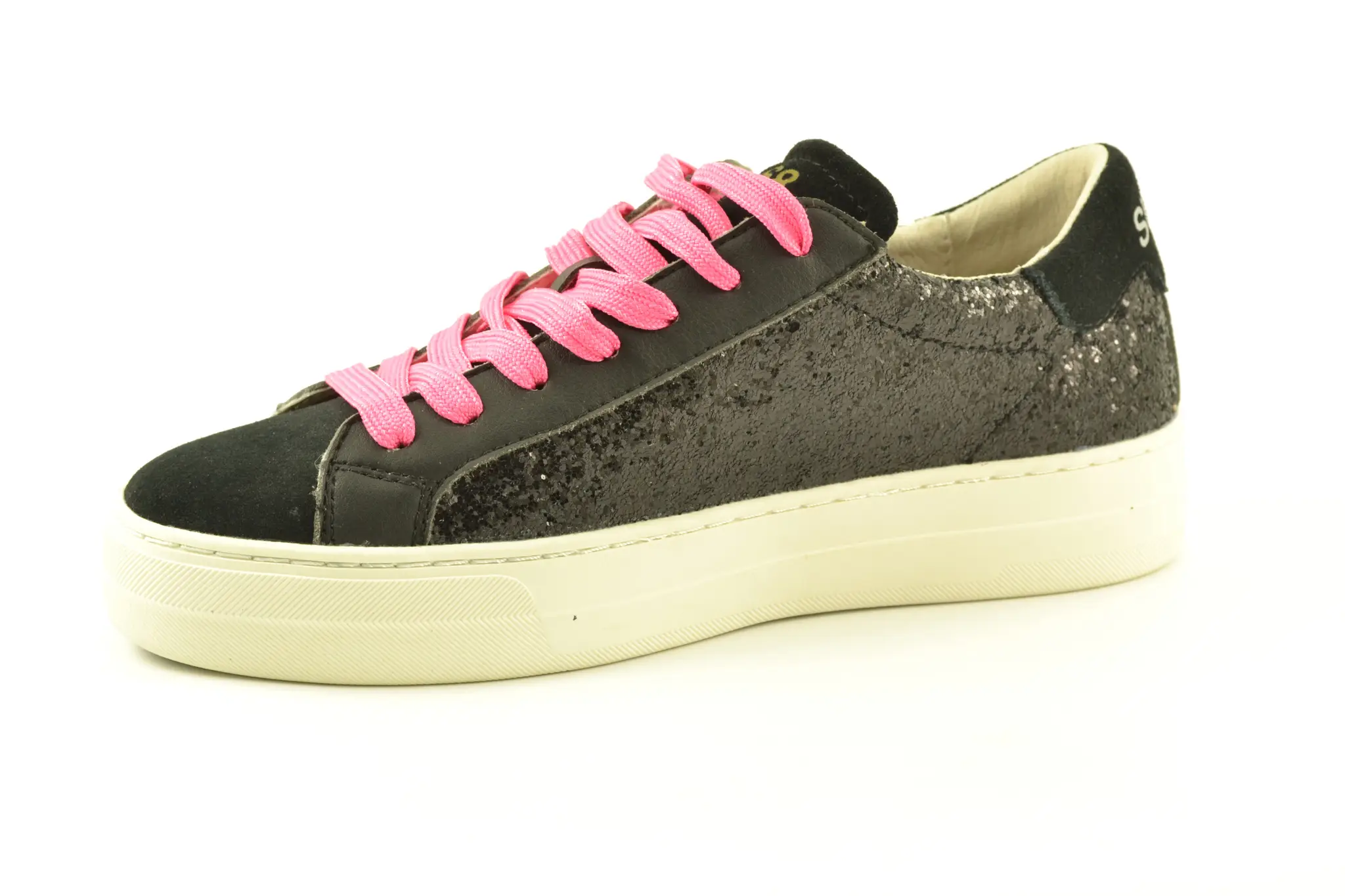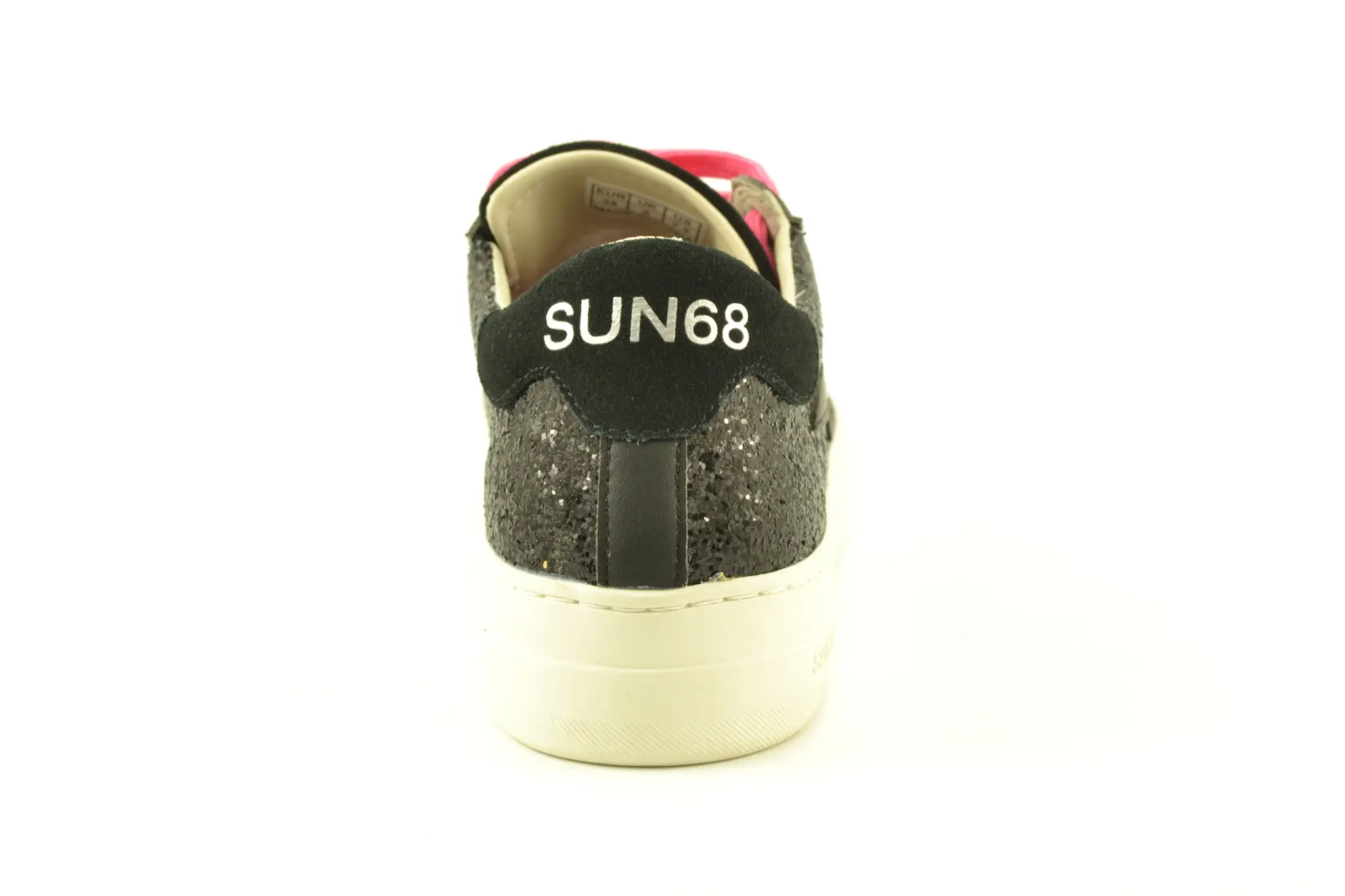 details: SUN68 is een Italiaans modemerk met casual designs. Dit model is uitgevoerd met zwarte glitters op de zijkanten. Het logo op de tong en zilveren accenten springen lekker in het oog en geven deze sneaker zijn unieke look. De witte kuipzool zorgt voor optimaal loopcomfort.