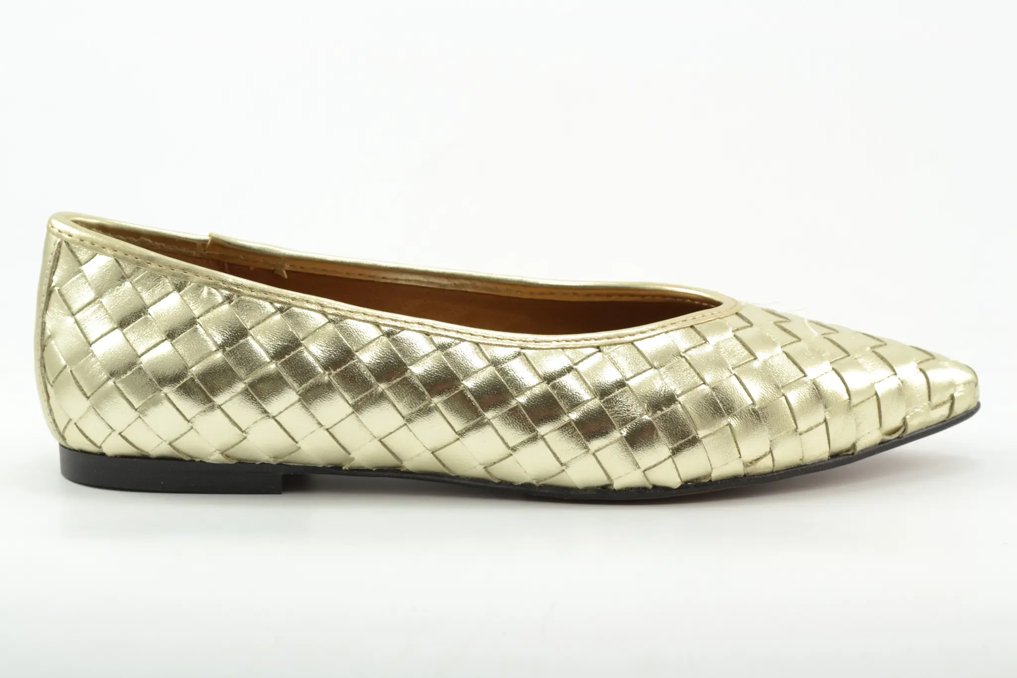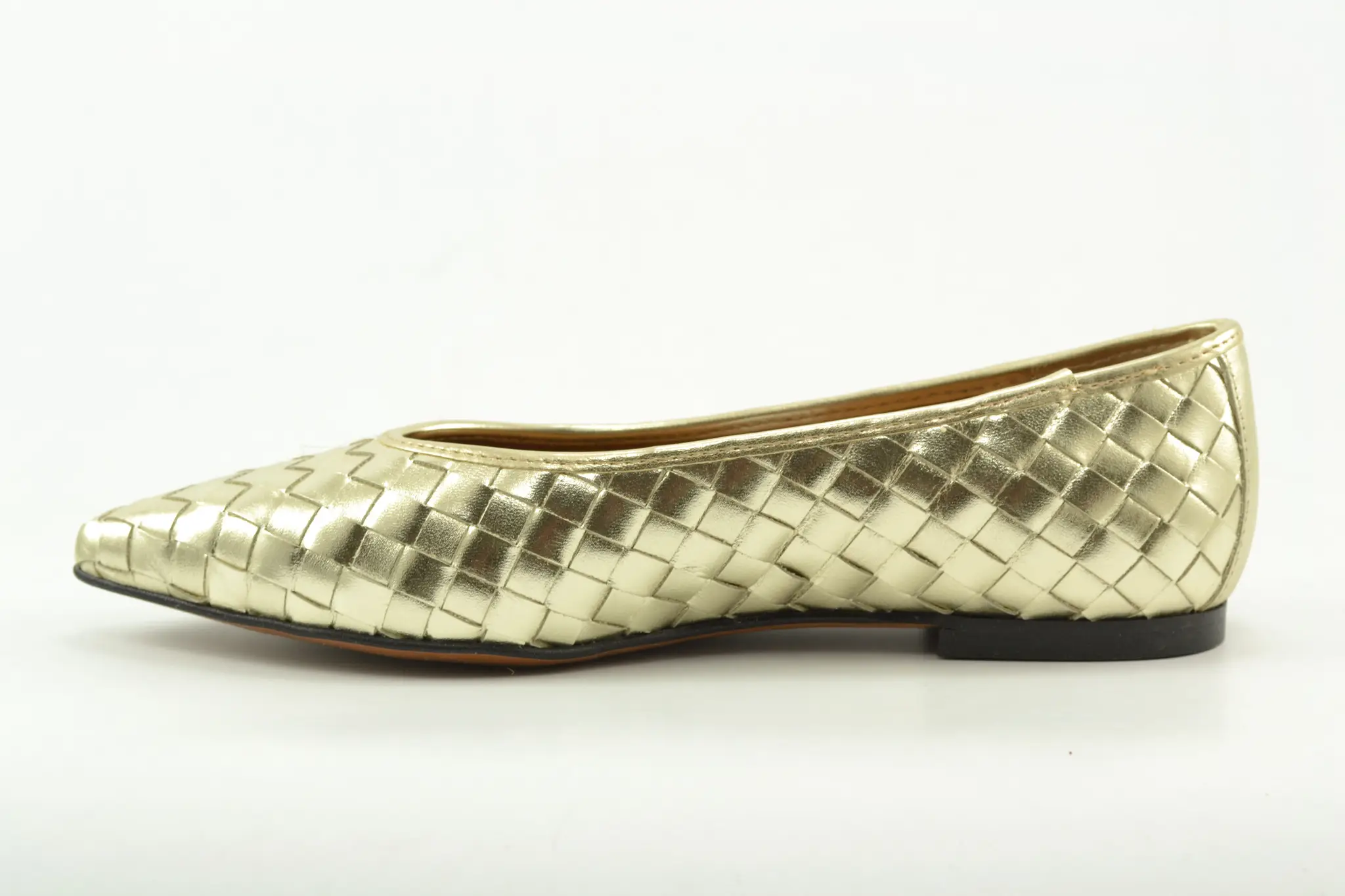 als je op zoek bent naar een krachtige en vrouwelijke look, heb je je ballerina’s van het Spaanse merk Toral gevonden… Deze goud leren ballerina’s zijn gemaakt van gevlochten leer en hebben een spitse leest en dat maakt deze ballerina’s super trendy. Make a statement!