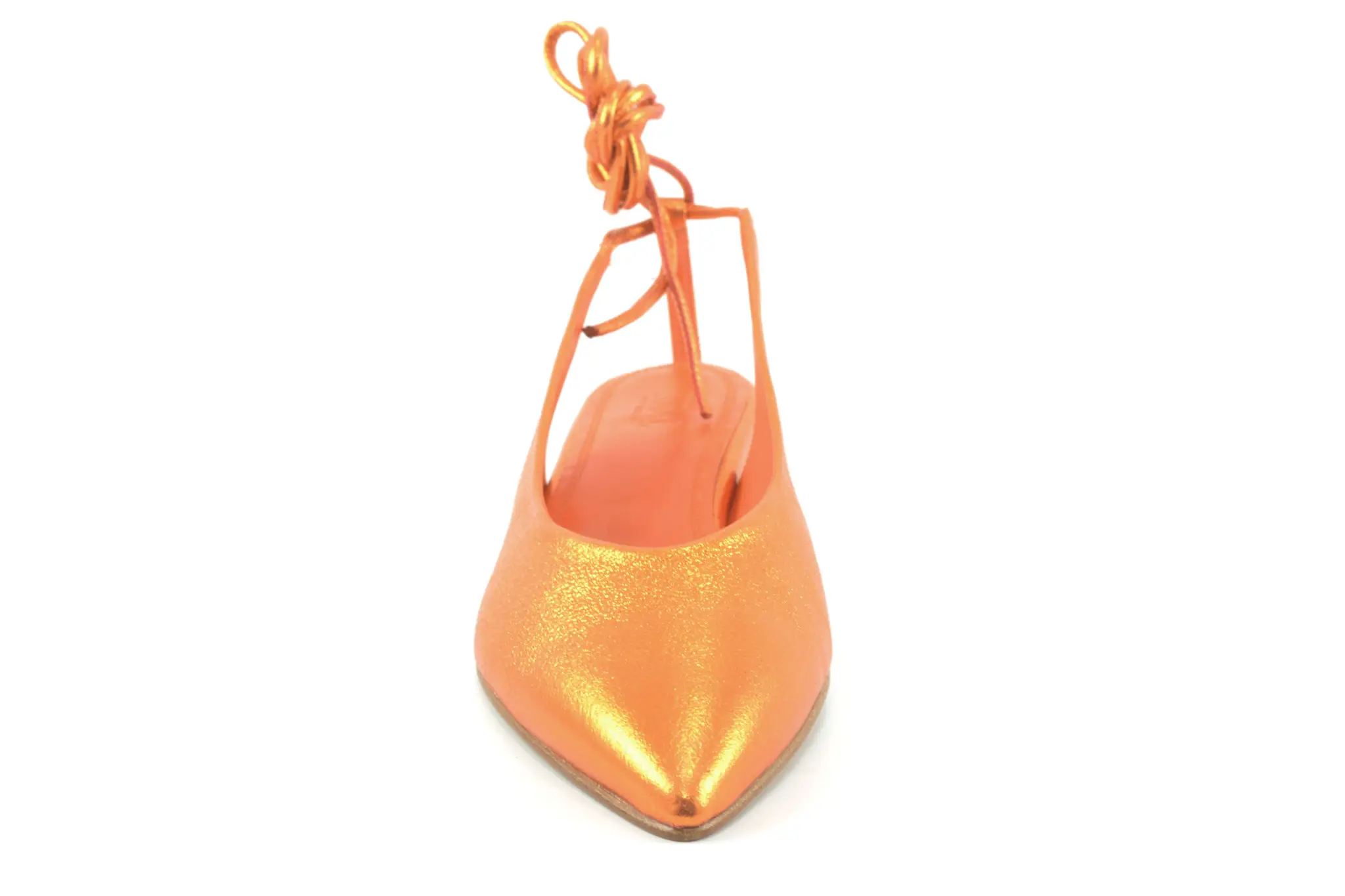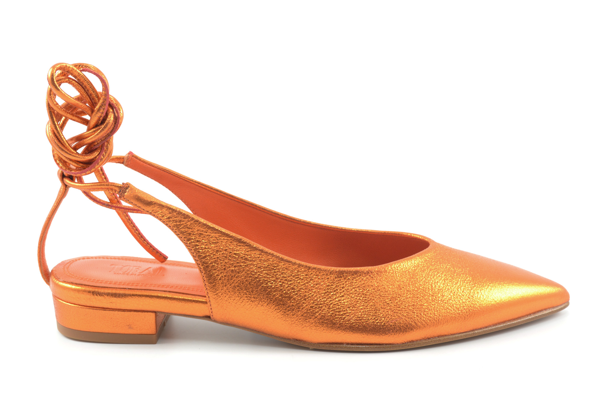 details: een mooie metallic oranje ballerina met wikkel. De wikkel om de enkel maakt deze ballerina helemaal af. Combineer deze schoen bij elke zomerse outfit en geef je outfit een vrouwelijke moderne twist.