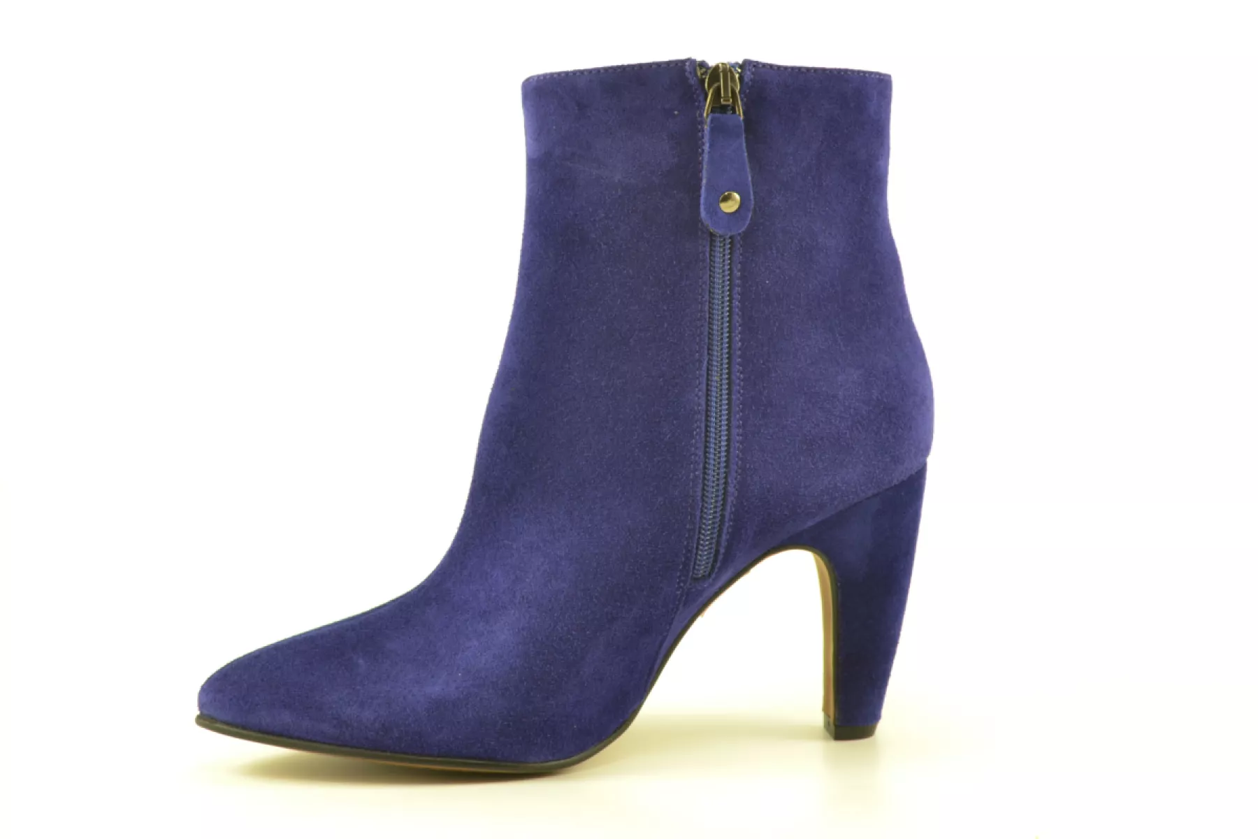 Deze mooie paars suede enkellaars van het Spaanse merk Toral is mooi door zijn eenvoud. De iets gebogen hak en spitse leest maakt deze laars extra bijzonder