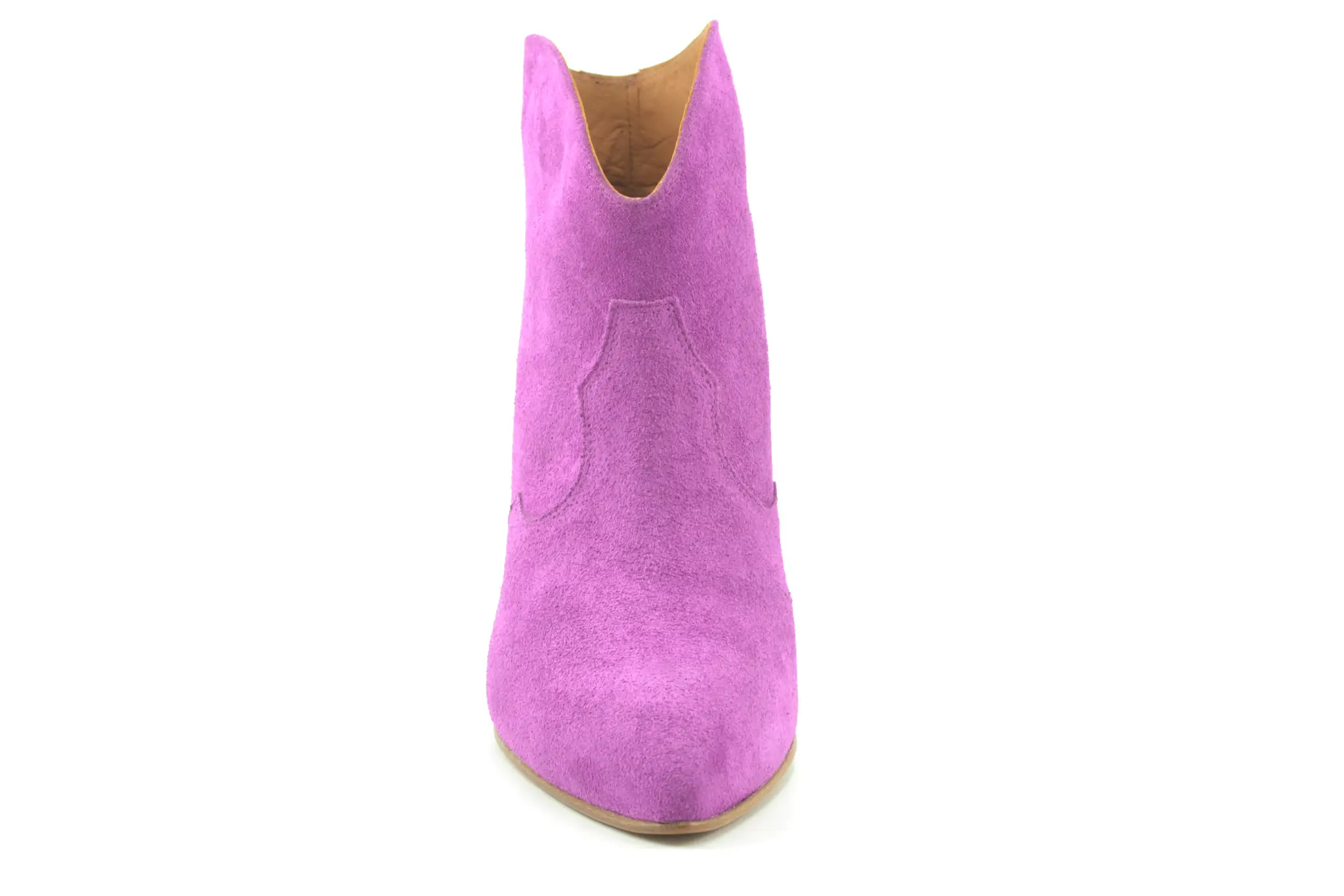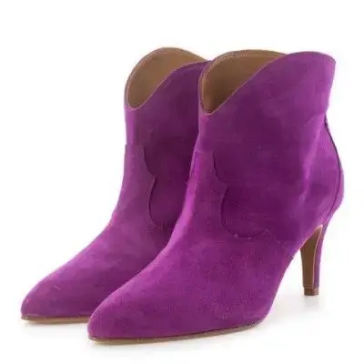 details: als je op zoek bent naar een krachtige en vrouwelijke look, heb je je enkellaarsjes gevonden… Deze fuxsia suede laarsjes hebben een dunne hak en een spitse leest en dat maakt dit laarsje super trendy. Make a statement!