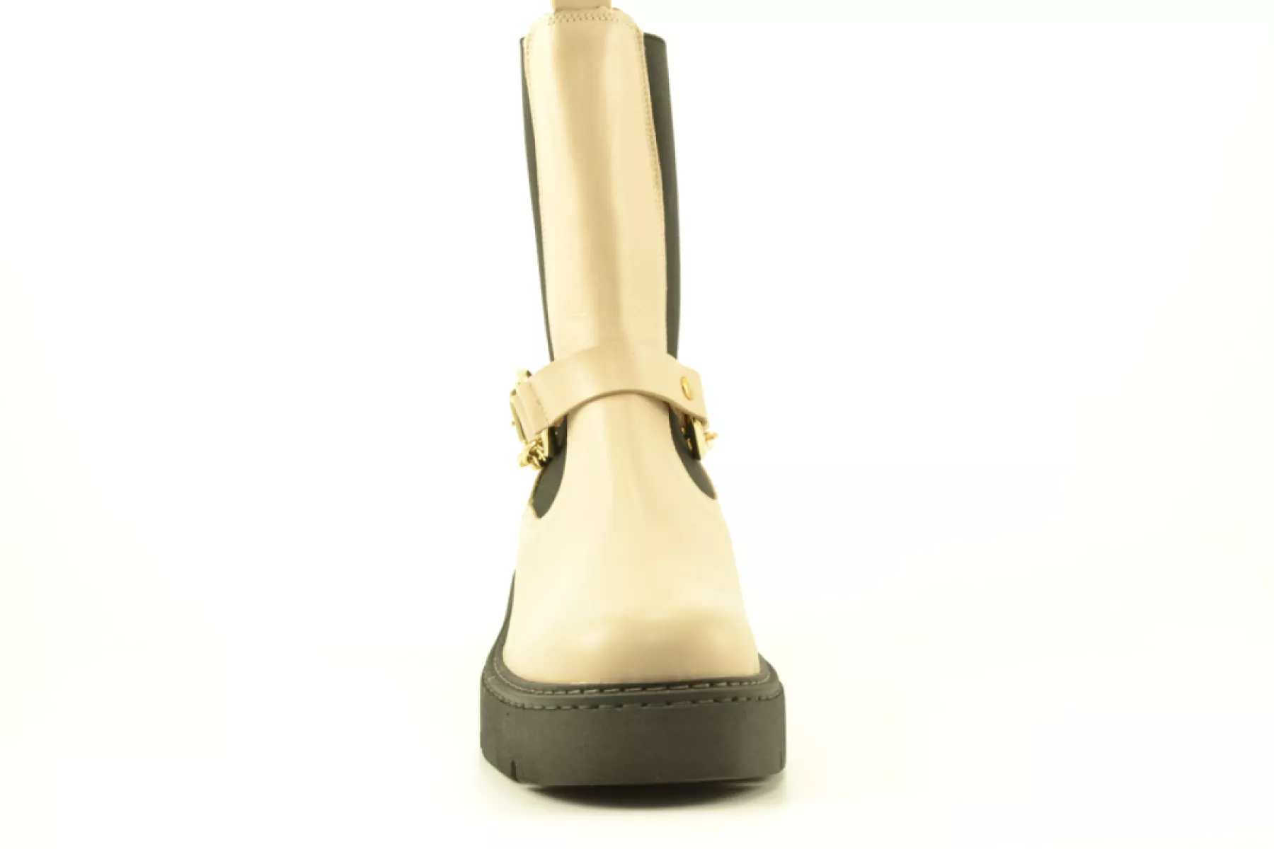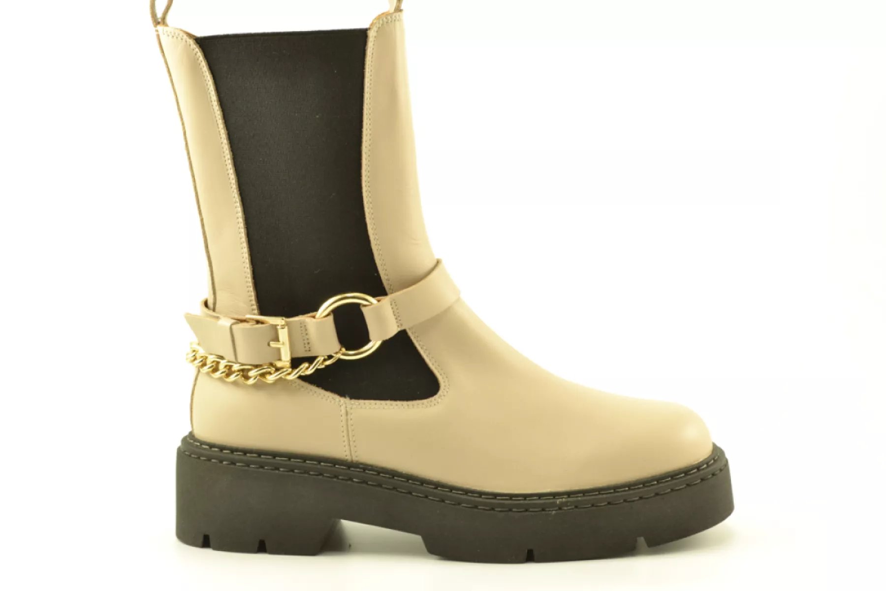 details: Dat het Spaanse merk Toral hele mooie laarzen maakt wisten we al maar deze valt onder de noemer “toppers”. Deze creme chelseaboot heeft een afneembaar bandje met goudkleurige details om de enkel. Daarbij heeft deze chelseaboot een dikke zwarte rubberen zool en zwarte elastische inzetten en krijgt daardoor een stoere maar toch vrouwelijke uitstraling.
