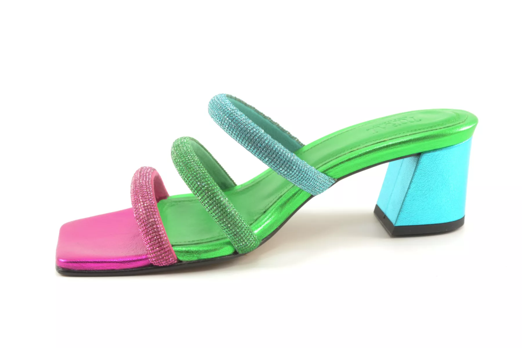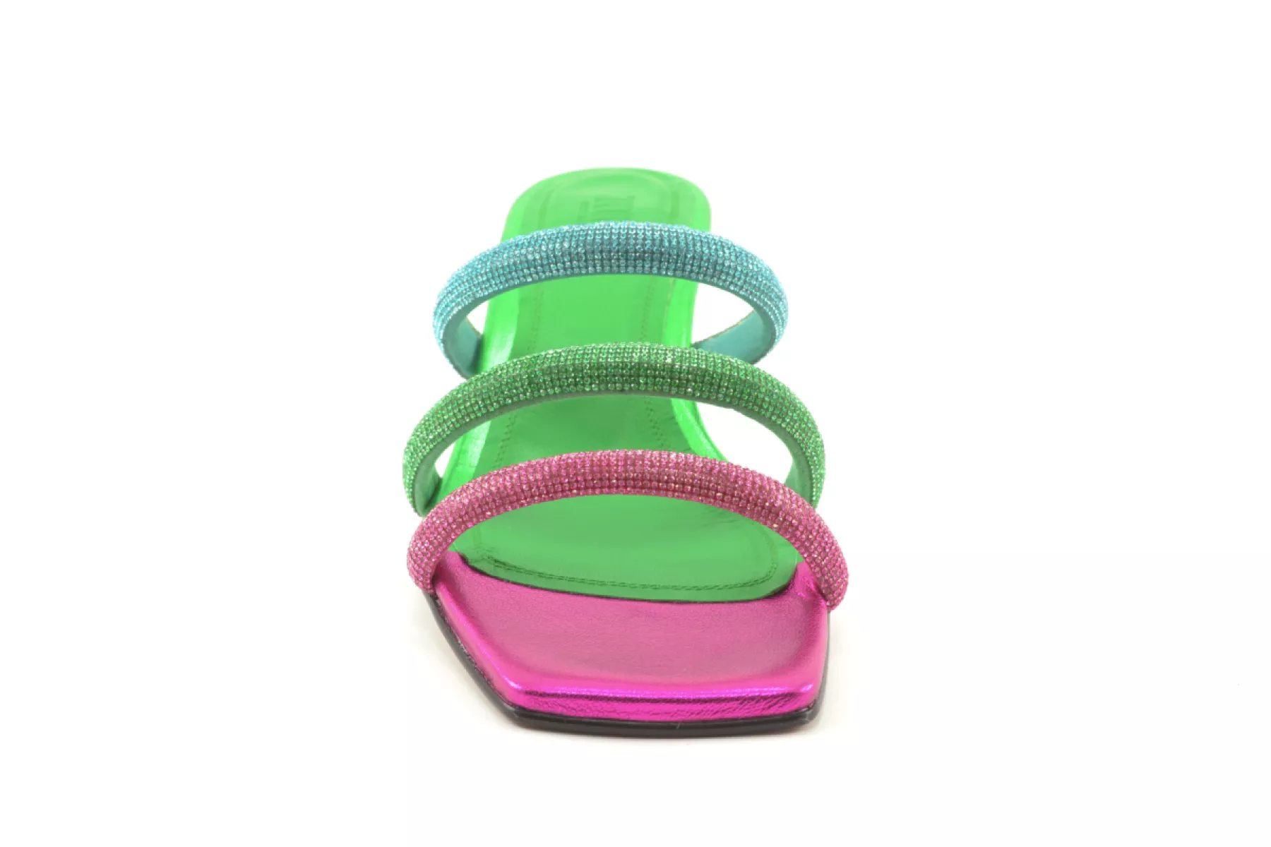 details: een mooie kleurige slipper met een blokhak. De strass in 3 kleuren maakt deze slipper helemaal af. Combineer deze slipper bij elke zomerse outfit en geef je outfit een vrouwelijke moderne twist.