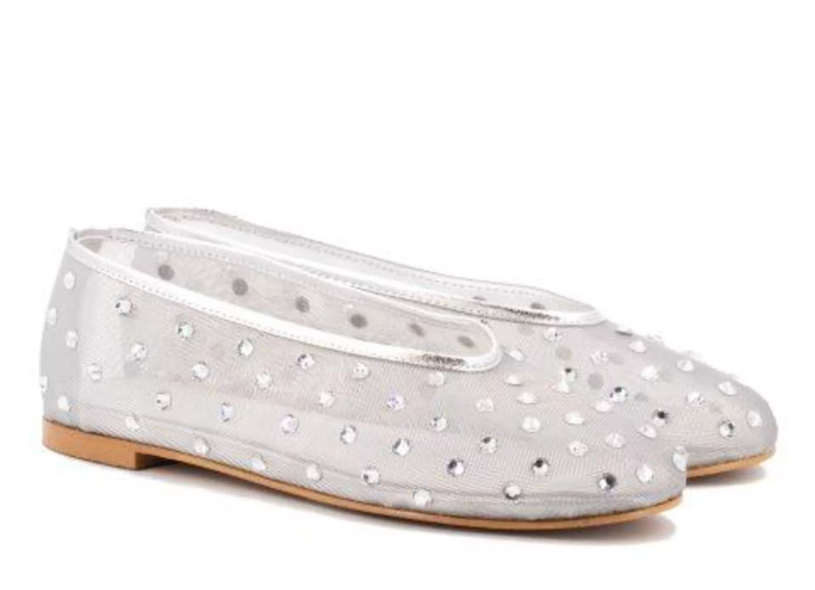 Als je op zoek bent naar een krachtige en vrouwelijke look, heb je je ballerina’s van het Spaanse merk Toral gevonden… Deze zilverkleurige doorzichtige ballerina’s zijn bezet met strass en dat maakt deze instappers super trendy. Make a statement!