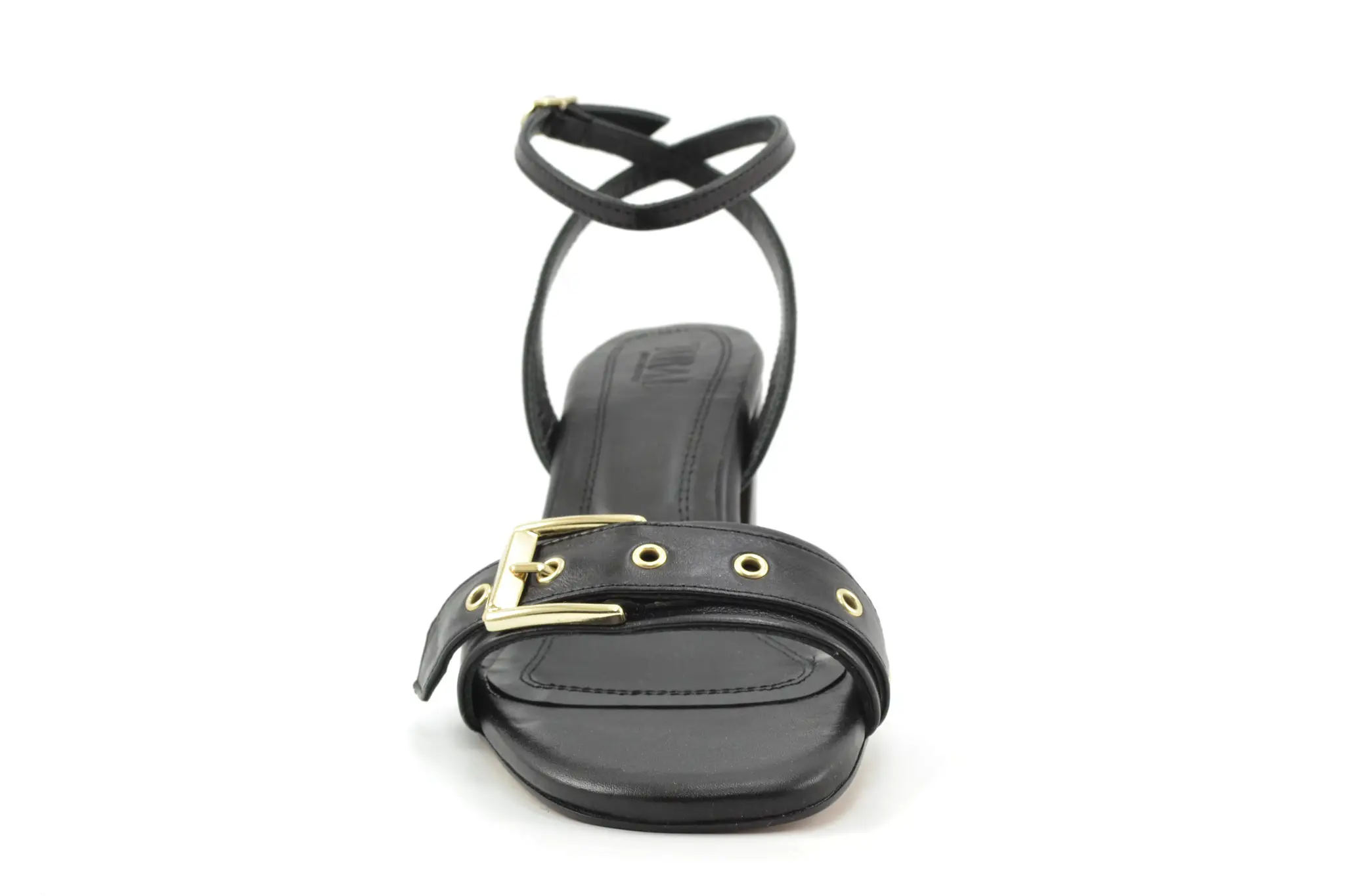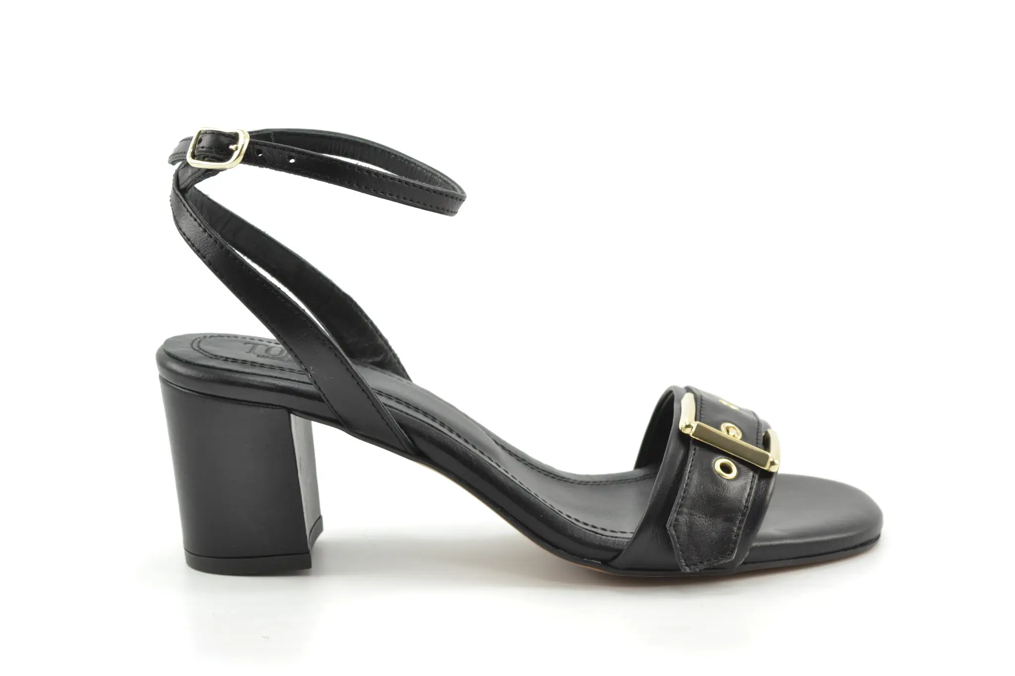 als je op zoek bent naar een krachtige en vrouwelijke look, heb je je sandalen van het Spaanse merk Toral gevonden… Deze zwart leren sandalen hebben een gouden gesp op de voorvoet en dat maakt deze mooie schoenen super trendy. Make a statement!
