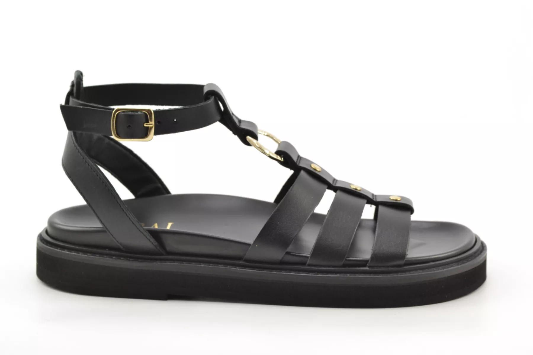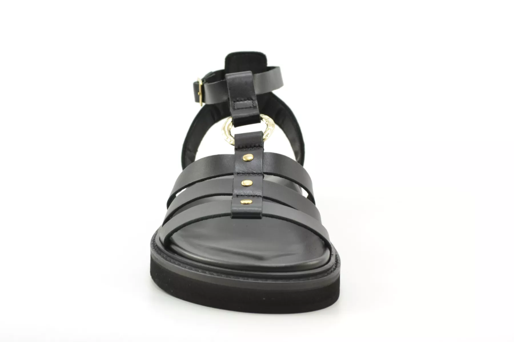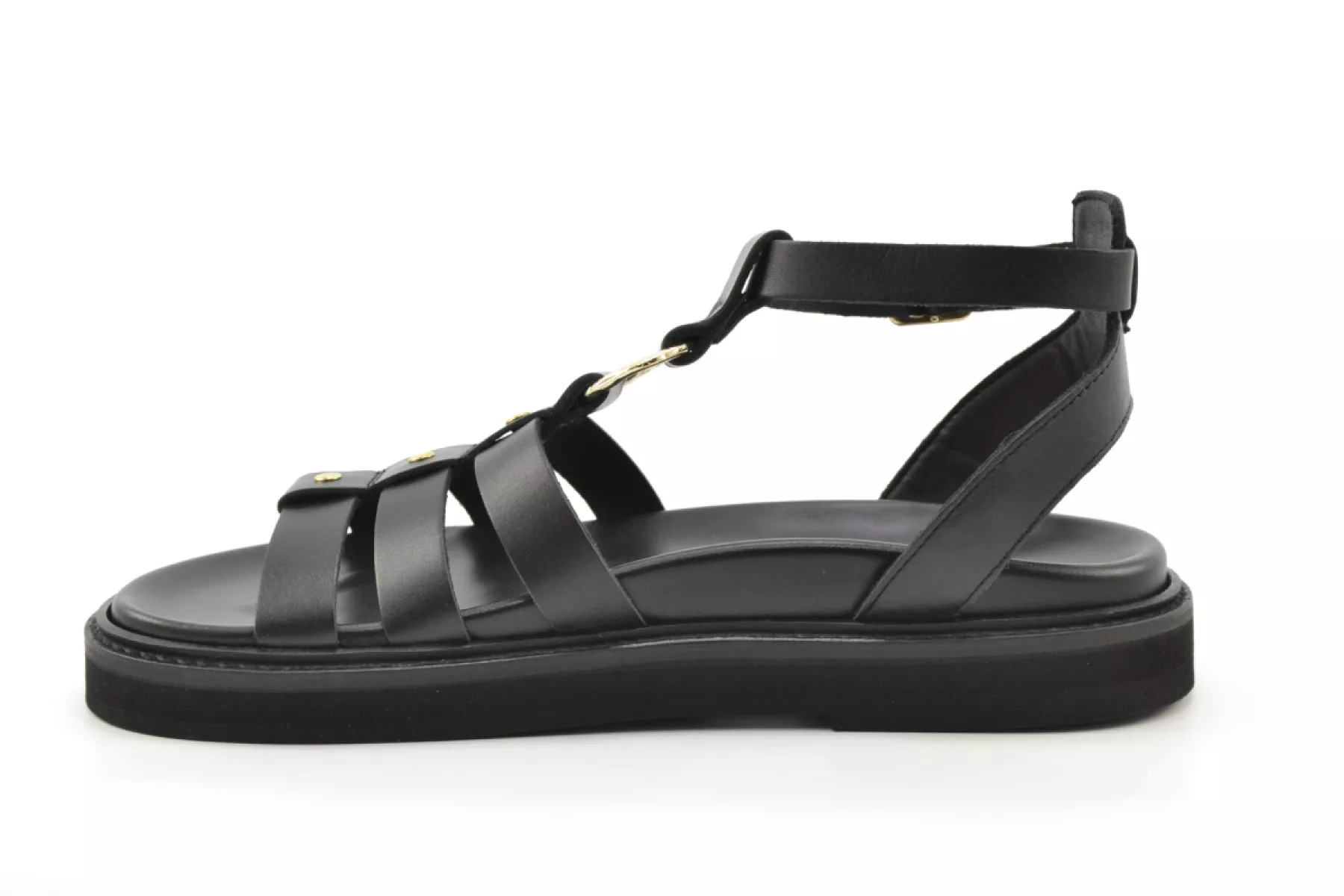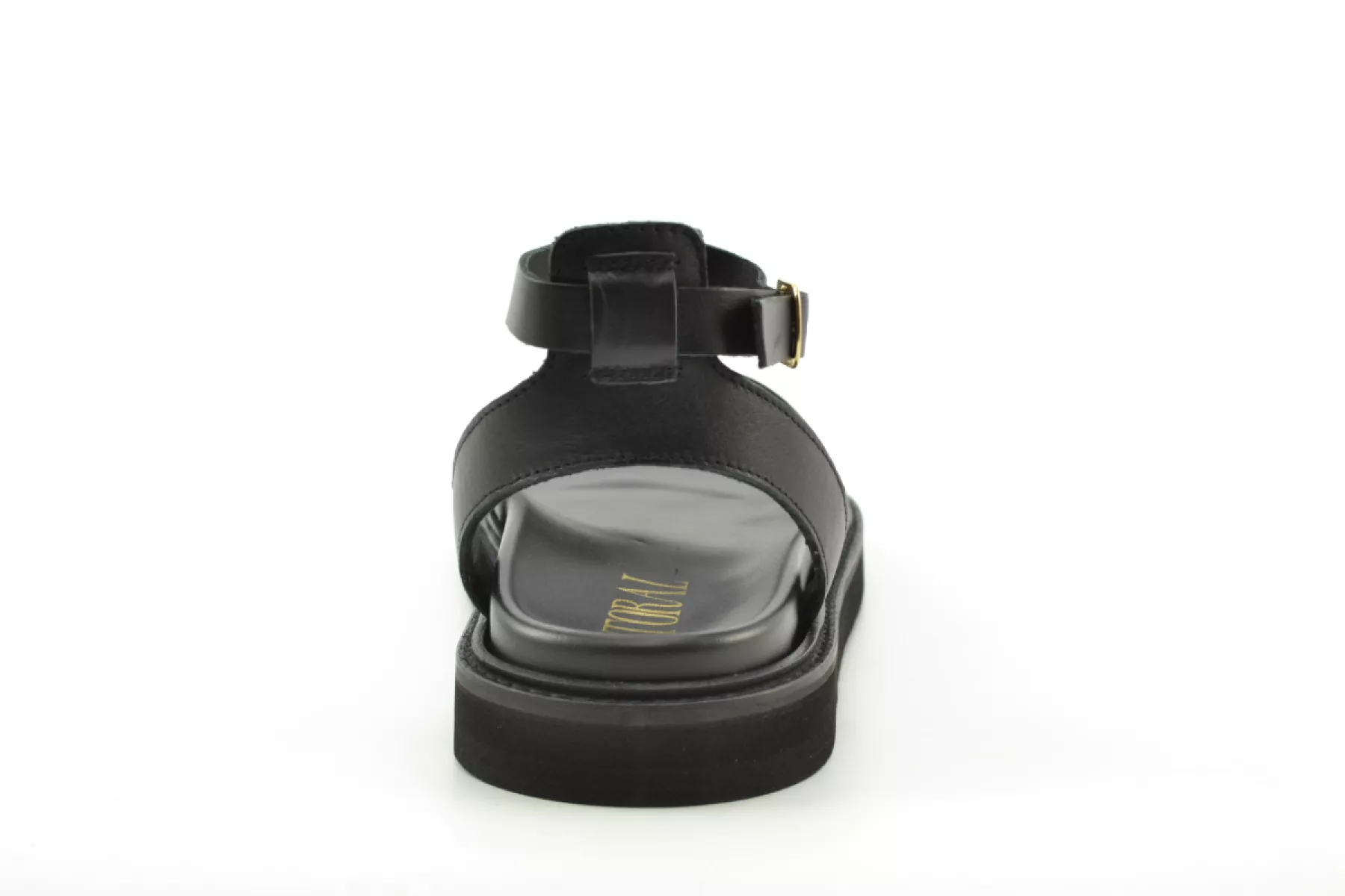 als je op zoek bent naar een krachtige en vrouwelijke look, heb je je sandalen van het Spaanse merk Toral gevonden… Deze zwarte sandalen hebben zilverklerige details en dat maakt deze sandalen super trendy. Make a statement!