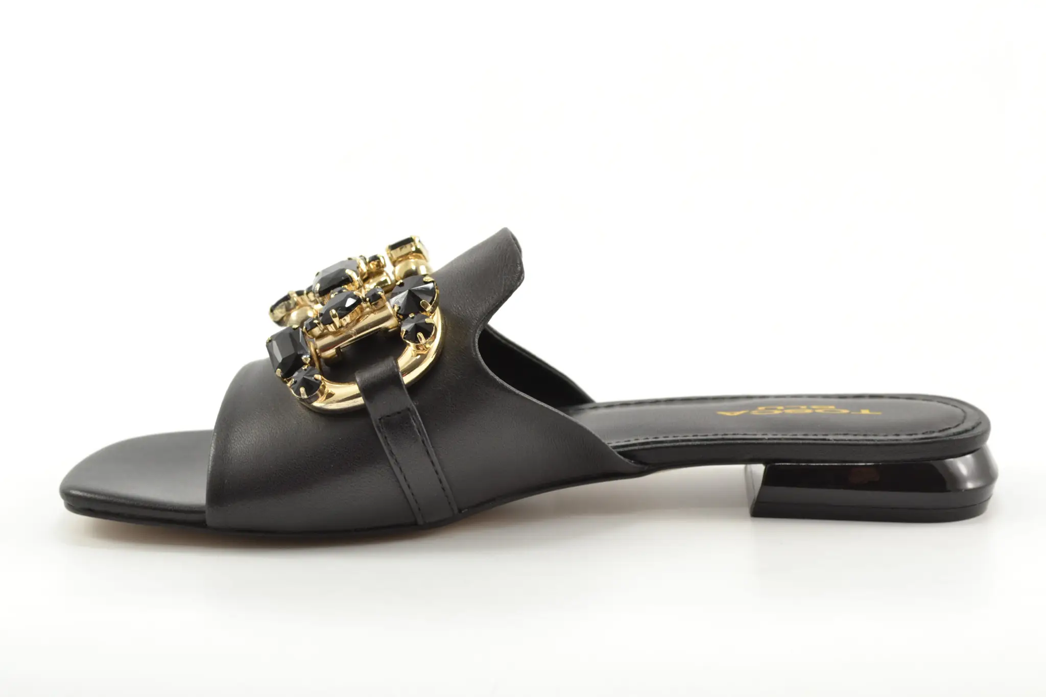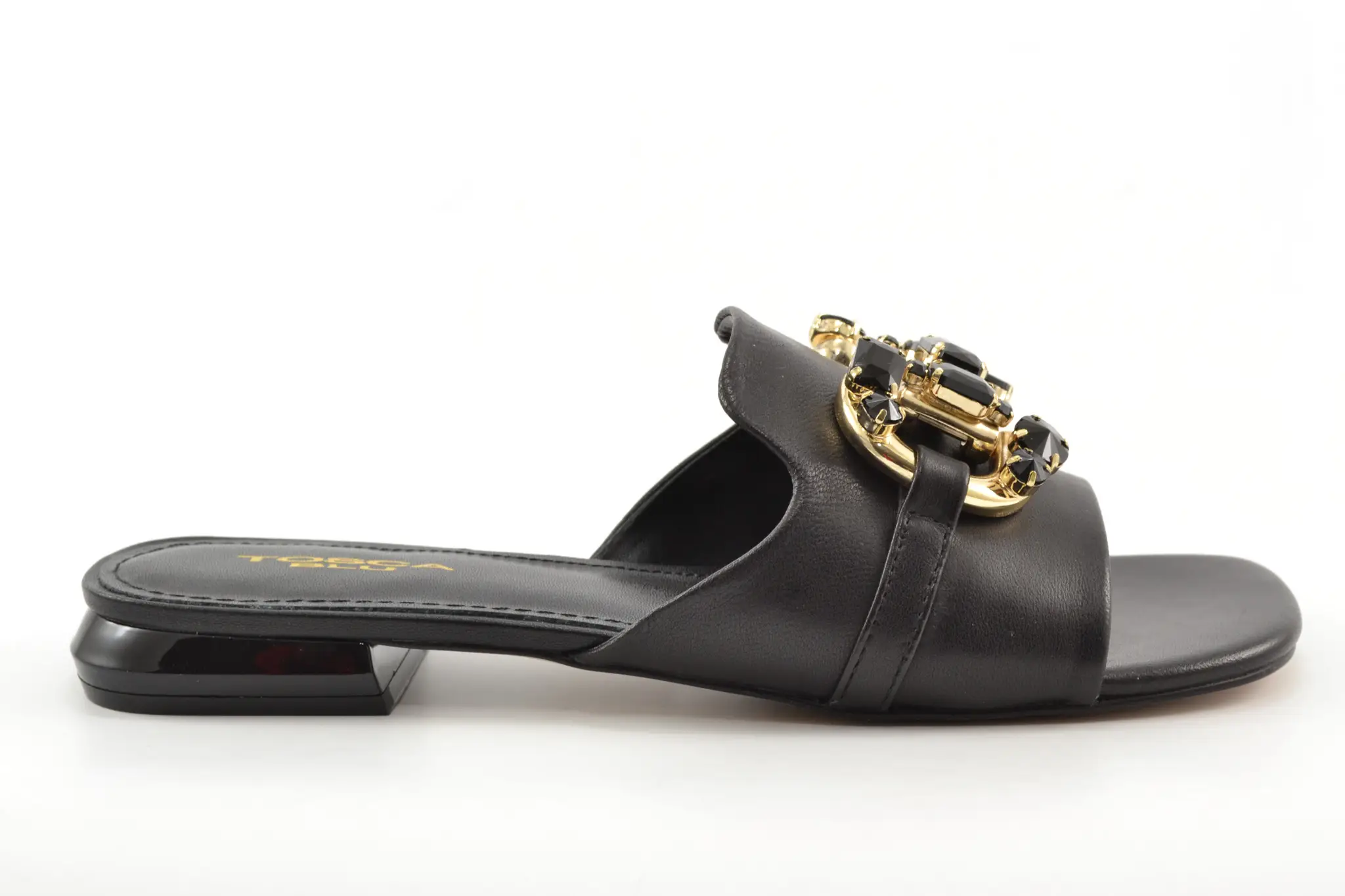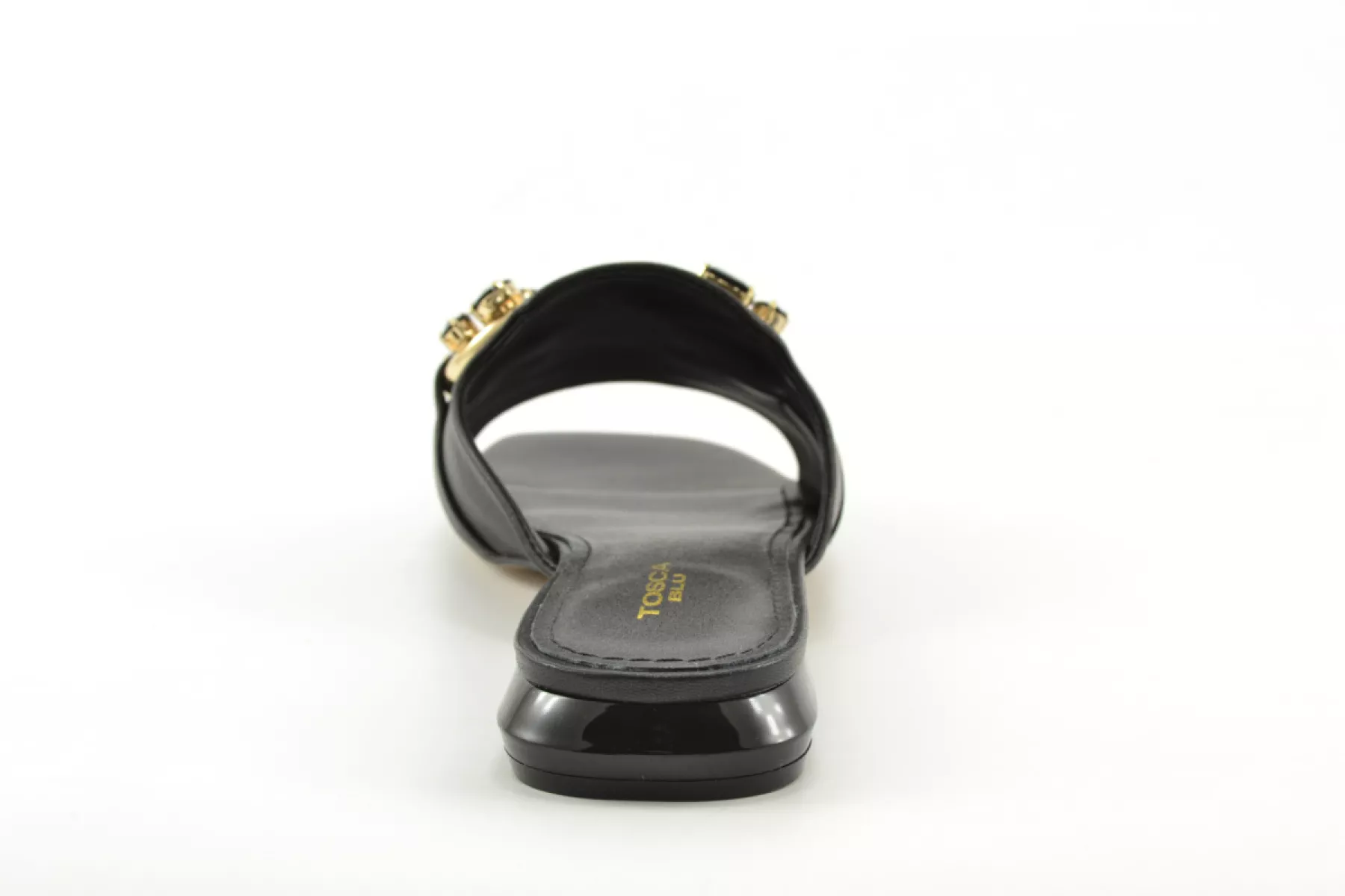 Tosca Blu slippers zwart leer/steentjes