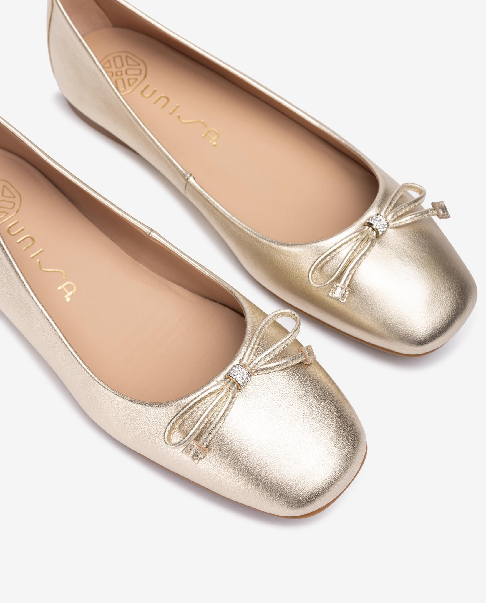 Unisa ballerina’s goud leer strik