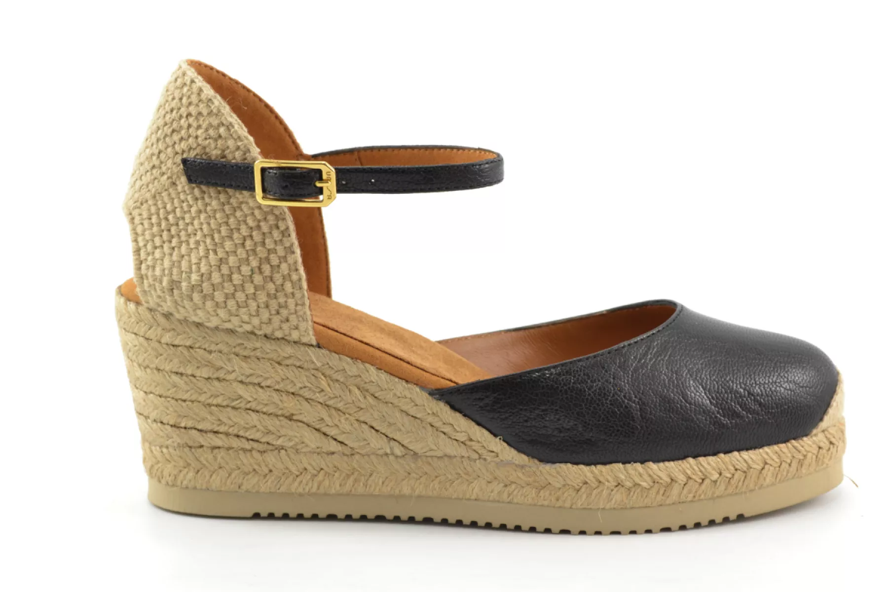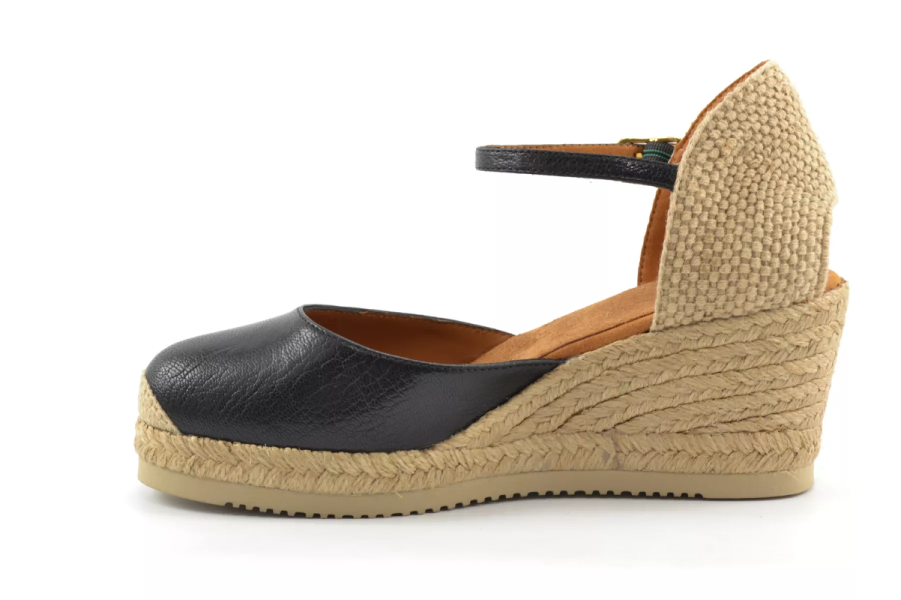 CACERES_24_RK Rock Espadrilles met ronde neus gemaakt van leer. Raffia hielstuk en verstelbaar met metalen gesp. 1 cm plateau en 5 cm hoge sleehak bekleed met jute. Zool in EVA, lichter en flexibeler dan ooit dankzij Unisa’s Superlight-technologie. Voel het comfort wanneer je deze espadrilles aandoet!