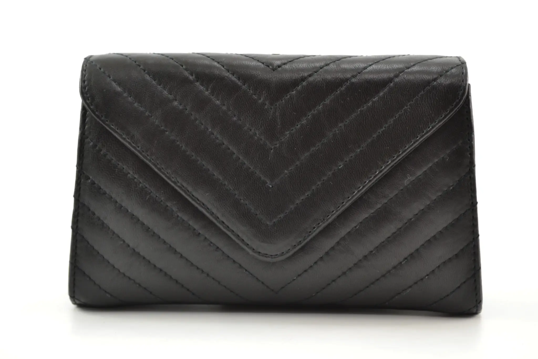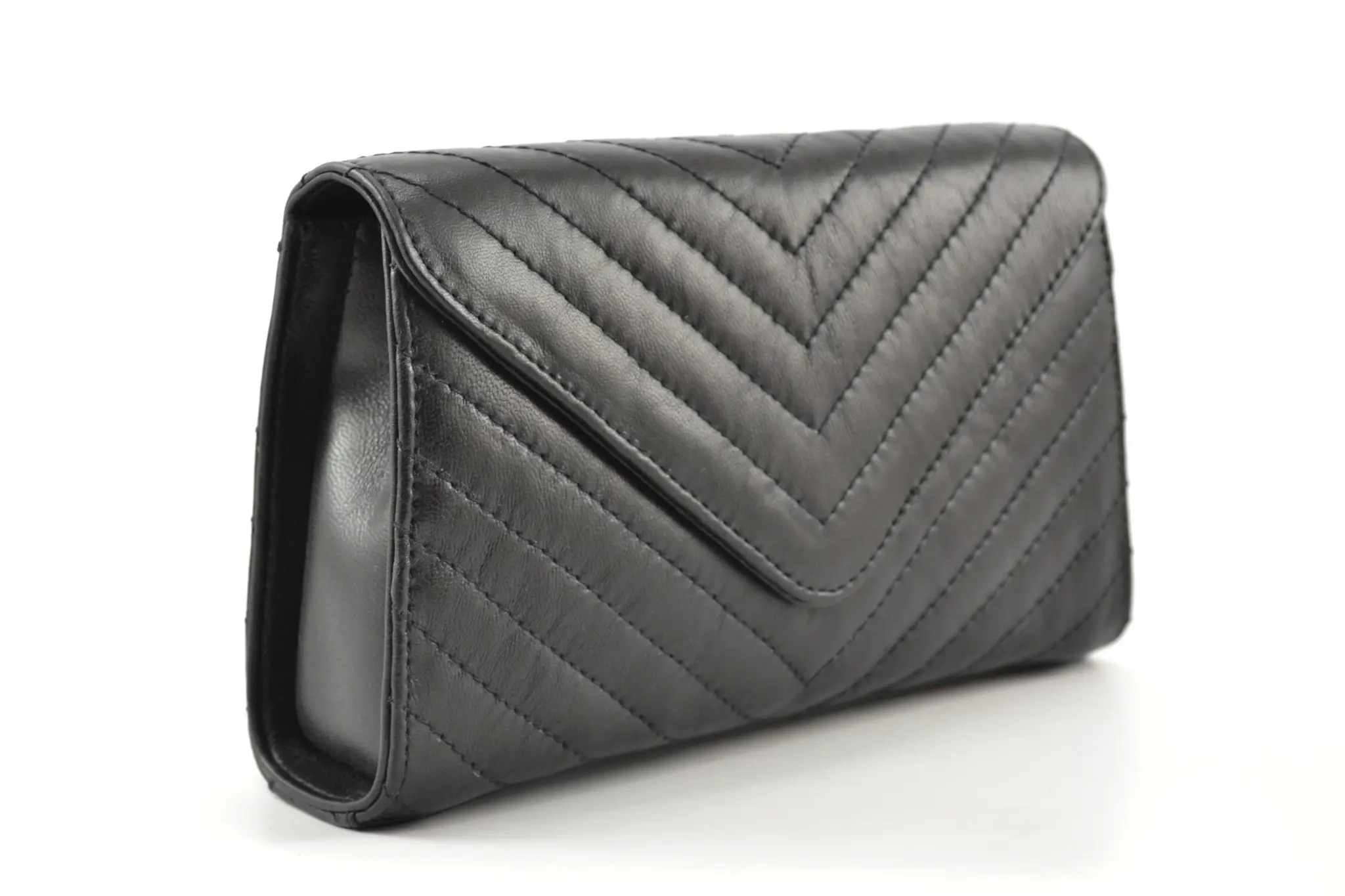Kleine handtas gemaakt van leer. Bijpassend stikseldetail met geometrisch effect. Magneetsluiting. Binnenvak met ritssluiting en afneembare goudkleurige ketting binnenin. Afmetinge: 14 cm X 23 cm X 7 cm