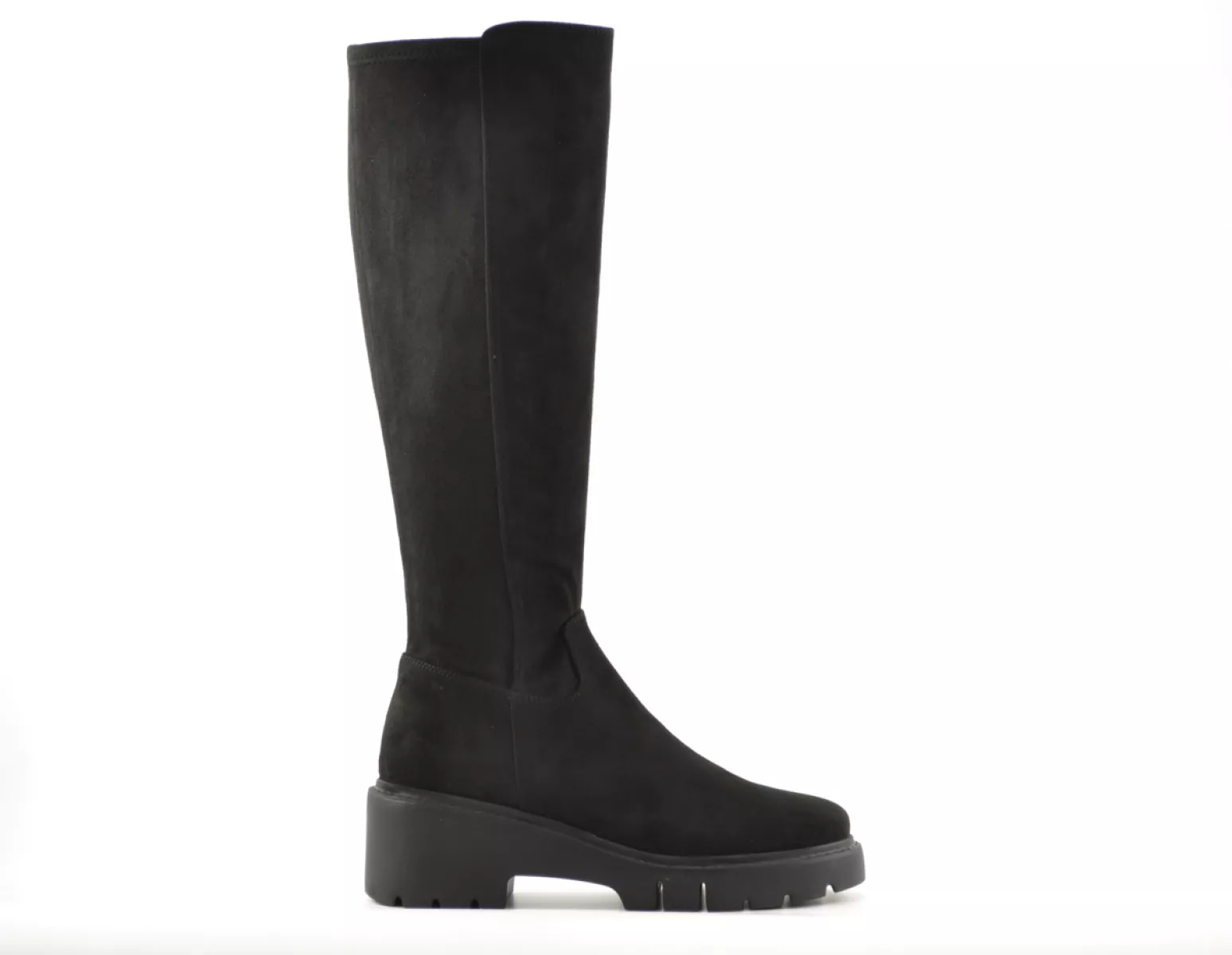 details: deze mooie zwarte laars heeft een oplopende zool en een stretch achterkant