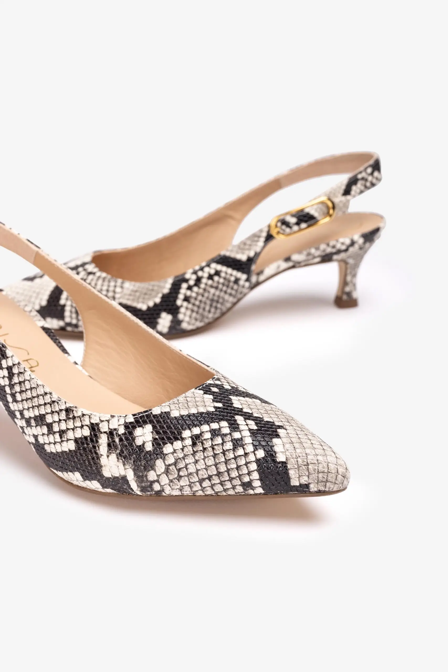 Slingbacks gemaakt van bedrukt leer animal print effect. Hak van 5 cm bekleed met bijpassend leer. Lichte, flexibele, rubberen antislipzool. Verstelbaar met metalen gesp aan de zijkant. Deze schoenen passen perfect bij al je outfits.