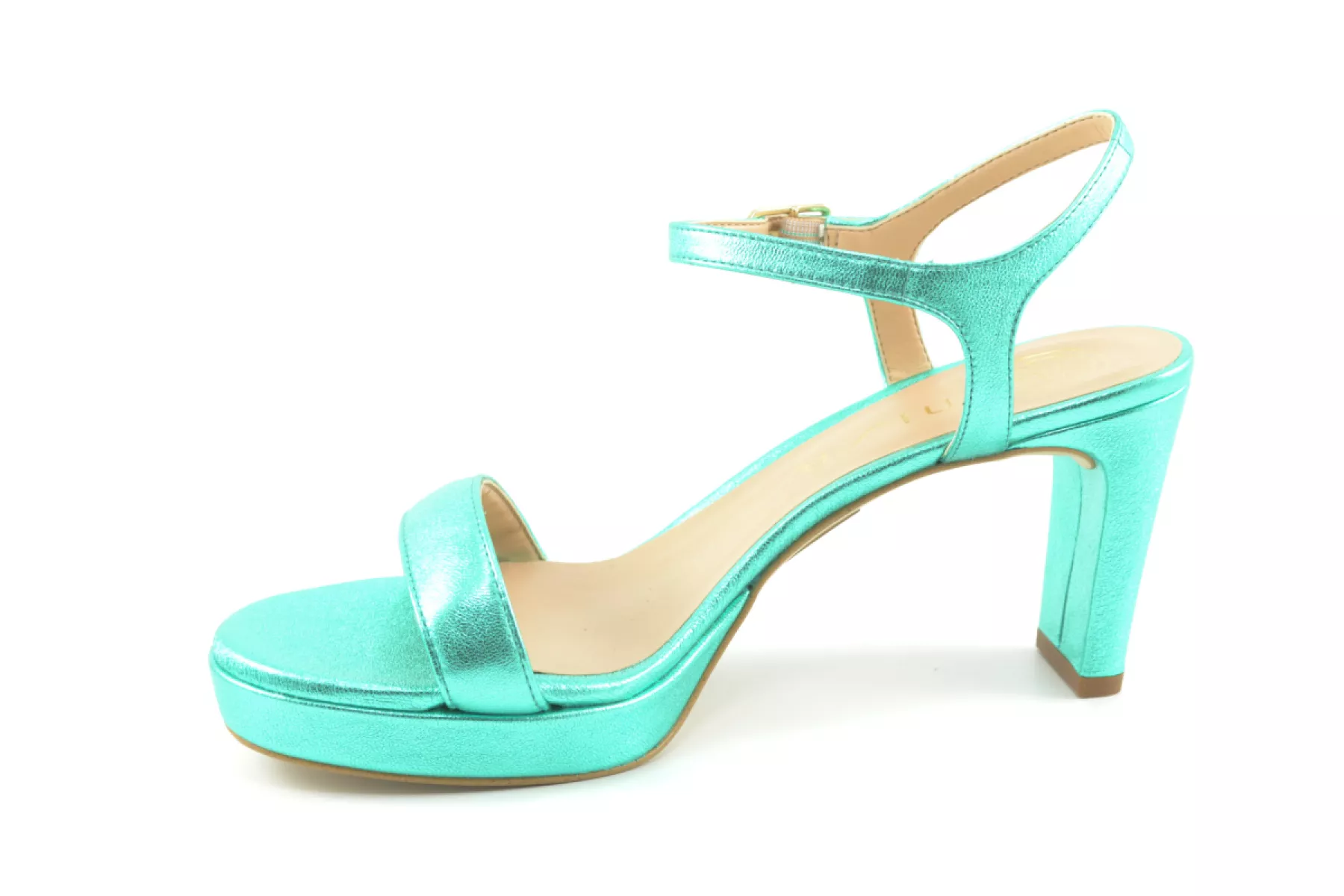 Unisa sandalen hak Soro metallic groen leer
