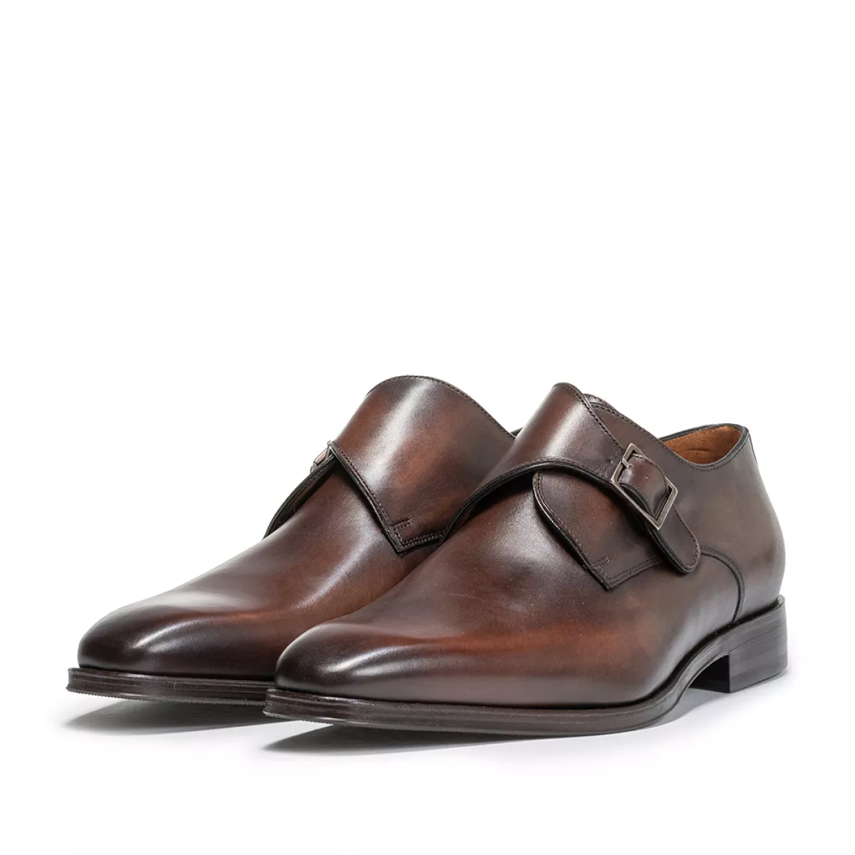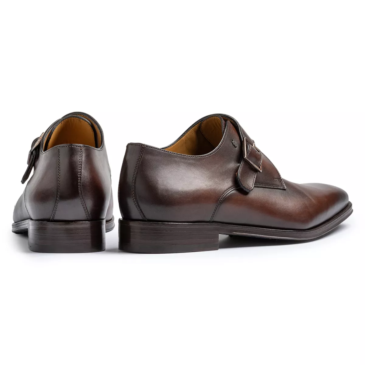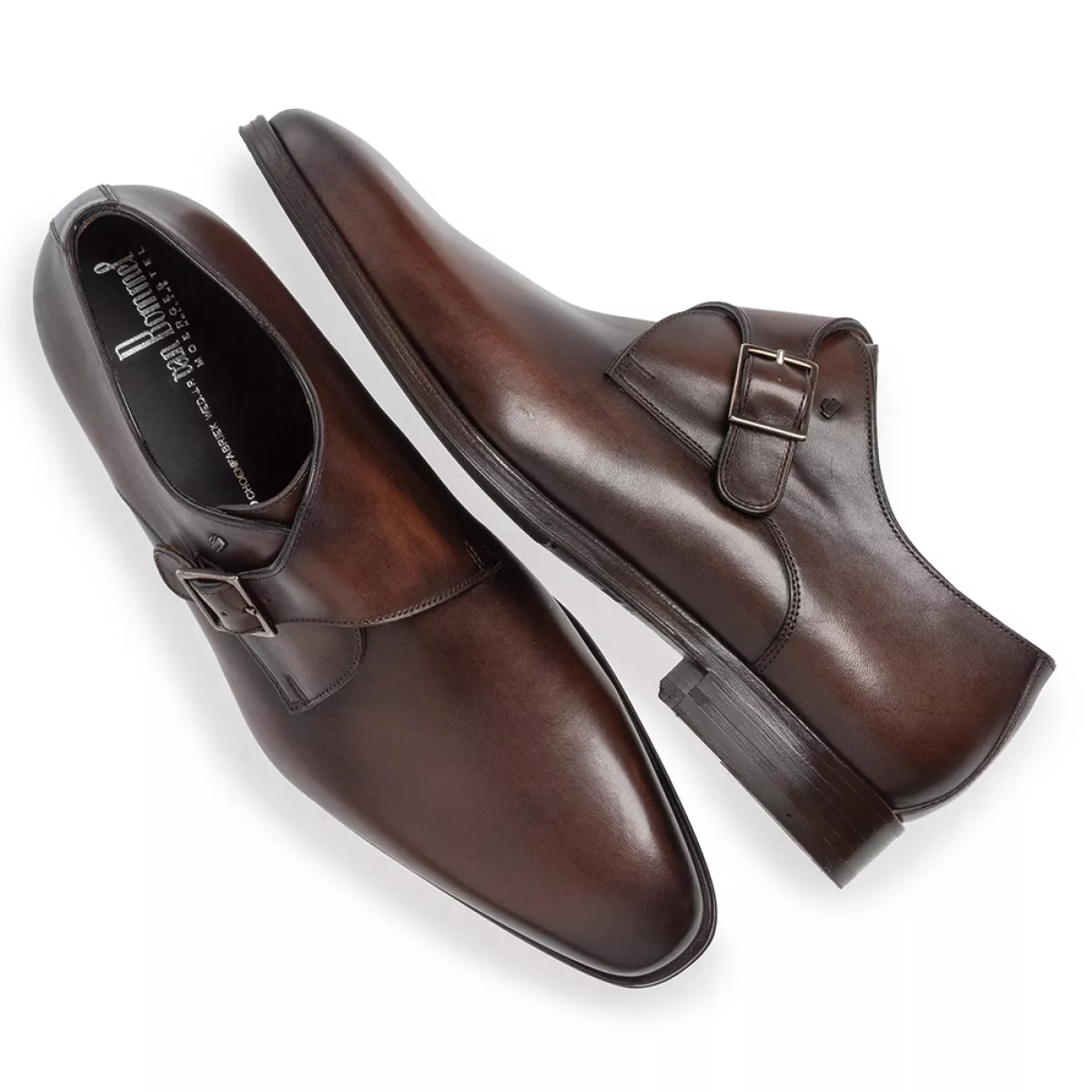 Dit gespmodel is onderdeel van de klassieke Van Bommel collectie. De schoen is gemaakt volgens de Blake maakwijze. Het loopvlak van de zool heeft een fijn antislip profiel. Het geleng van de zool is van plantaardig gelooid leer dat met de hand een stijlvolle finish laag heeft gekregen. De hak is middels een sierlijke zwaluwstaartverbinding opgedeeld in twee vlakken. Het deel dat tijdens het lopen het meest belast wordt is van slijtvast rubber, het daaraan grenzende deel is van hetzelfde plantaardig gelooide leer als het geleng. Om te voorkomen dat u met uw hak in de zoom van uw broek blijft steken is het puntje van de hak dat aan de binnenzijde zit afgeschuurd. In de zijkant van de zoolrand zijn aan de boven- en onderzijde twee zeer fijne haarkanten gefreesd. De lederen bovenrand van de schoen en de omtrek van het gespenpand is hoogwaardig afgewerkt met een dunne zwart paspoil. Het bovenwerk is gemaakt uit eerste klas donkerbruin kalfsleer. Aan de zijkant van de schoen is naast de gesp het iconische koperen VB’tje in het leer geslagen. De voering is volledig opgetrokken uit kwalitatief hoogwaardig kalfsleer.
