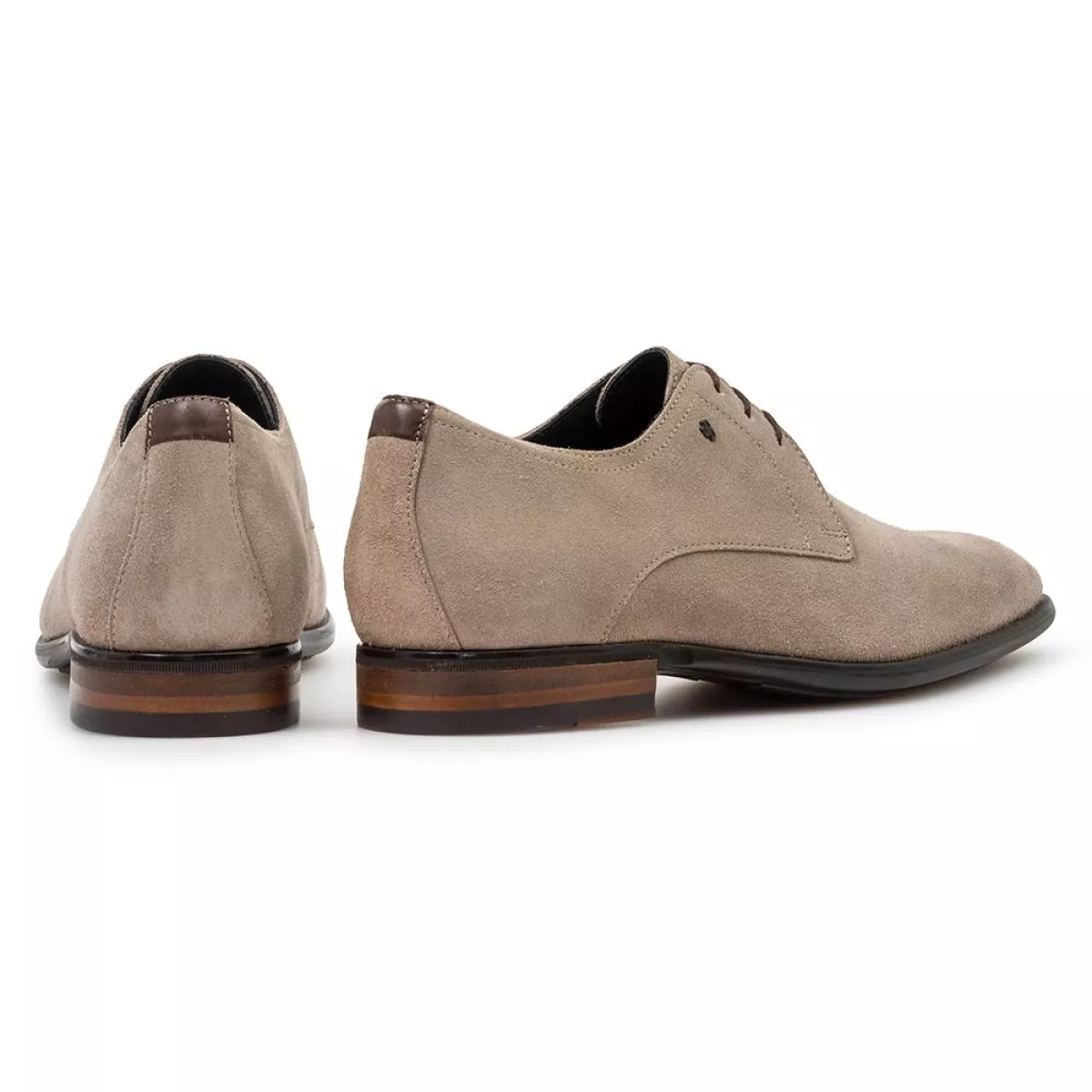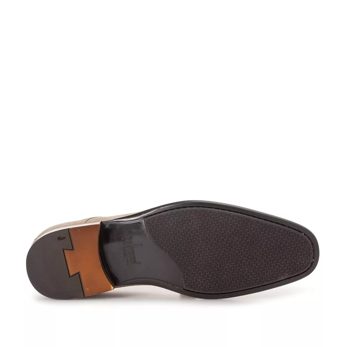 Deze lage veterschoen met derbysluiting is onderdeel van de klassieke Van Bommel-collectie. De rubberen loopzool is geproduceerd in een op maat gemaakte spuitmal, waardoor er geen lederen zoolrand nodig is. De schoen is hierdoor extra soepel en oogt net wat informeler dan een model met een klassieke zool met lederen zoolrand. De lederen opbouwhak is fraai afgewerkt met een zwaluwstaartverbinding in het loopvlak. De inlegzool is uitneembaar en kan eventueel worden vervangen door een eigen steun- of inlegzool. De schoen is uitgevoerd met een hoogwaardige, zwarte kalfslederen voering. In de voering is een luxe textiellabel gestikt met Van Bommel-branding. Op de veterklep is een stud met het iconische koperkleurige VB-logo in het leer geslagen. Deze schoen is uitgevoerd in klassiek lichtbruin suède. Het suède heeft een lichte nalooiing ondergaan met plantaardige oliën, waardoor de vleug een mooi schrijfeffect heeft en luxe aanvoelt. Het suède is afkomstig van een suèdelooierij in Fucecchio, in de regio Firenze, Italië.