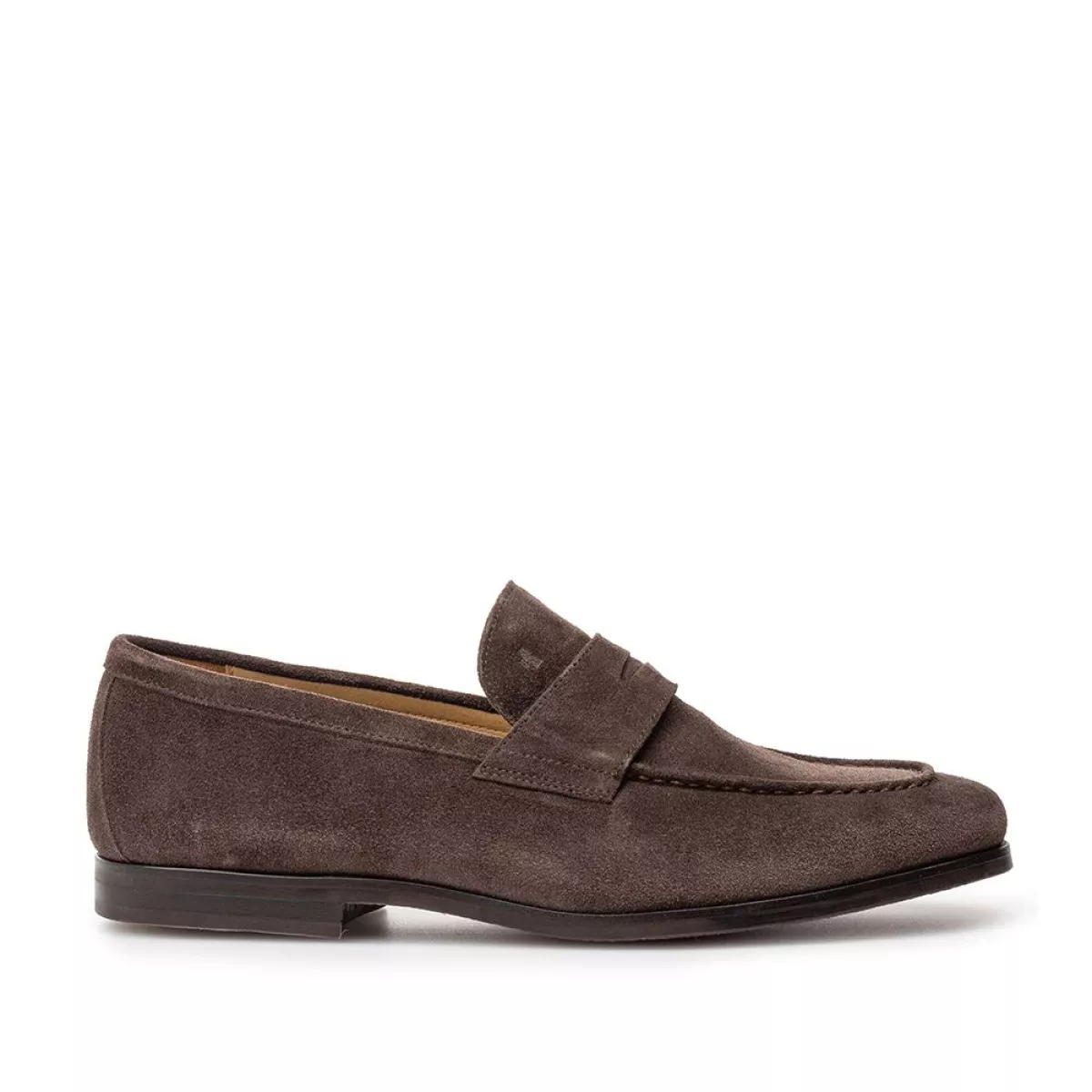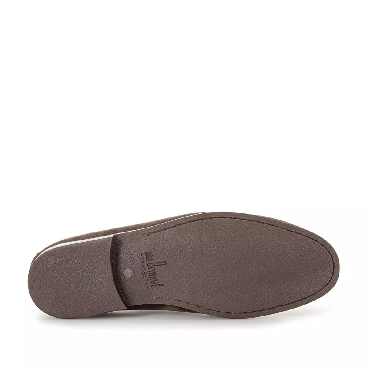 Deze stijlvolle loafer maakt deel uit van de klassieke Van Bommel-collectie. De schoen is uitgevoerd met een rubberzool met een luxe lederen opbouwhak en lederen zoolrand. Het niet-uitneembare voetbed is tot aan de tenen voorzien van een laagje comfortabel foam. De loafer is gevoerd met een fijne, zachte kalfslederen voering, waardoor de schoen soepel om de voet valt. Op de klep van de loafer is een kleurloos VB-logo in het suède gestempeld. Het suède heeft een fijne, korte vleug en is afkomstig van een gespecialiseerde suèdelooierij in Santa Croce sullArno, Pisa, Italië.