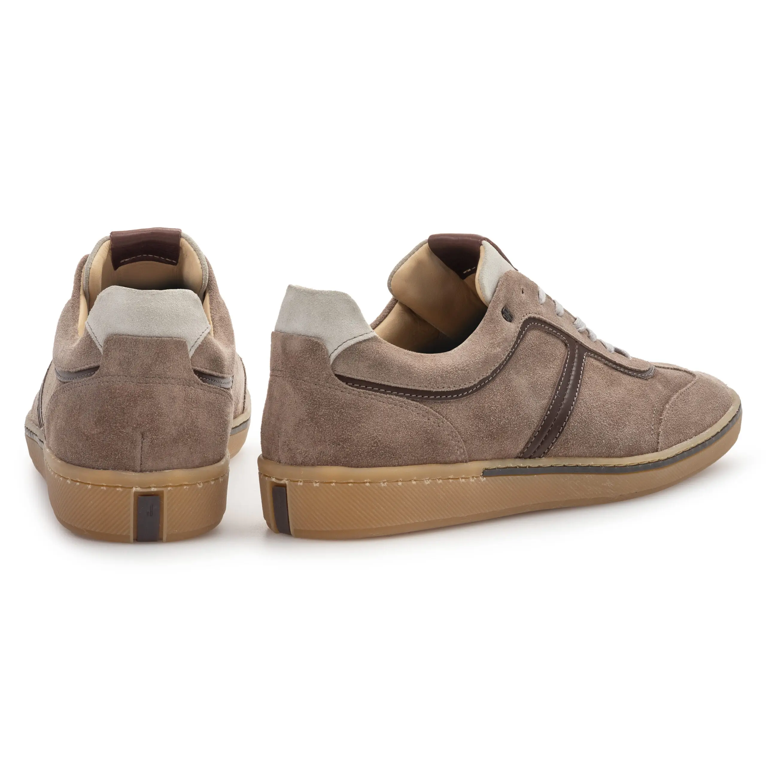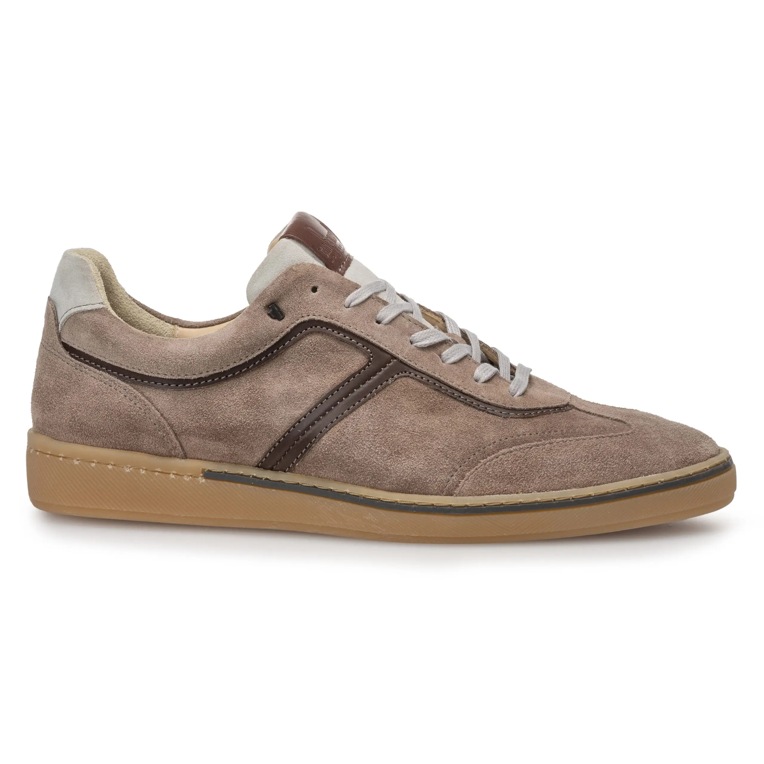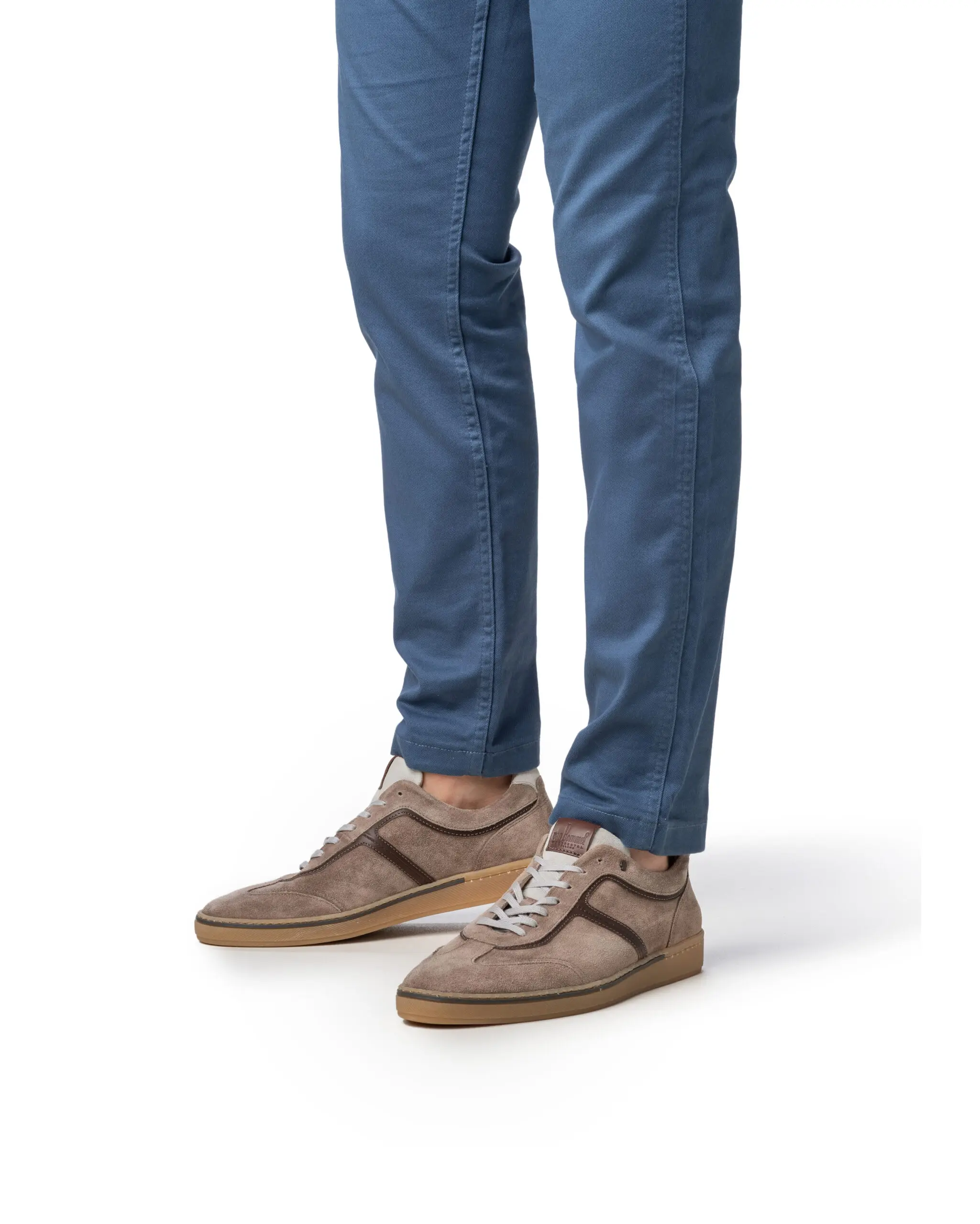 Deze stijlvolle casual schoen onderscheidt zich door zijn eenvoud. Het meest karakteristieke aan de schoen is het dunne strookje leer dat ingelegd is in de zijwand van de slijtvaste TPU zool. Het model is ingetogen sportief, de detaillering is klassiek. Bovenaan de rijgsluiting is het klassieke koperkleurig VB logootje in het suède geslagen. De schoen is gevoerd met eersteklas kalfsvoering en ingelegd met een comfortabel voetbed dat volledig uitneembaar is. Deze variant is uitgevoerd in klassiek lichtblauw suède dat gelooid is in Santa Croce Sull’Arno in Pisa, Italië.