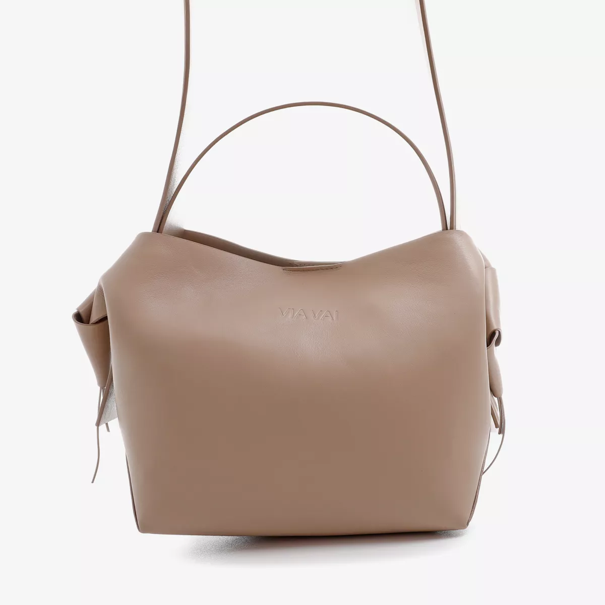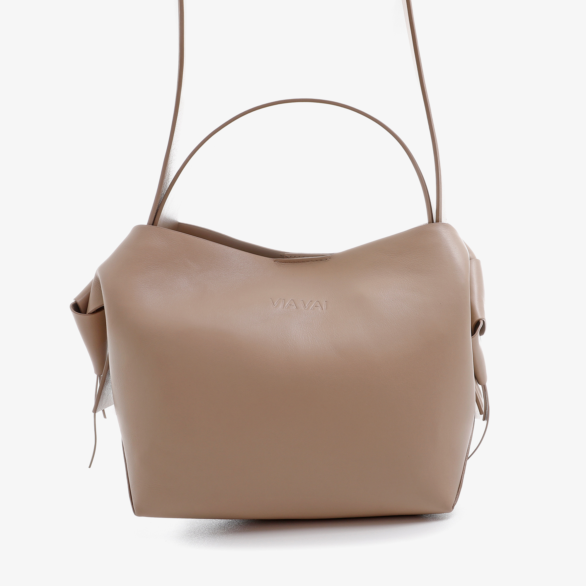touch. Door de minimalistische look kun je deze veelzijdige beige tas eindeloos combineren met jouw garderobe. De geknoopte details aan de zijkanten zorgen voor die extra vrouwelijke touch. Effortless chic.