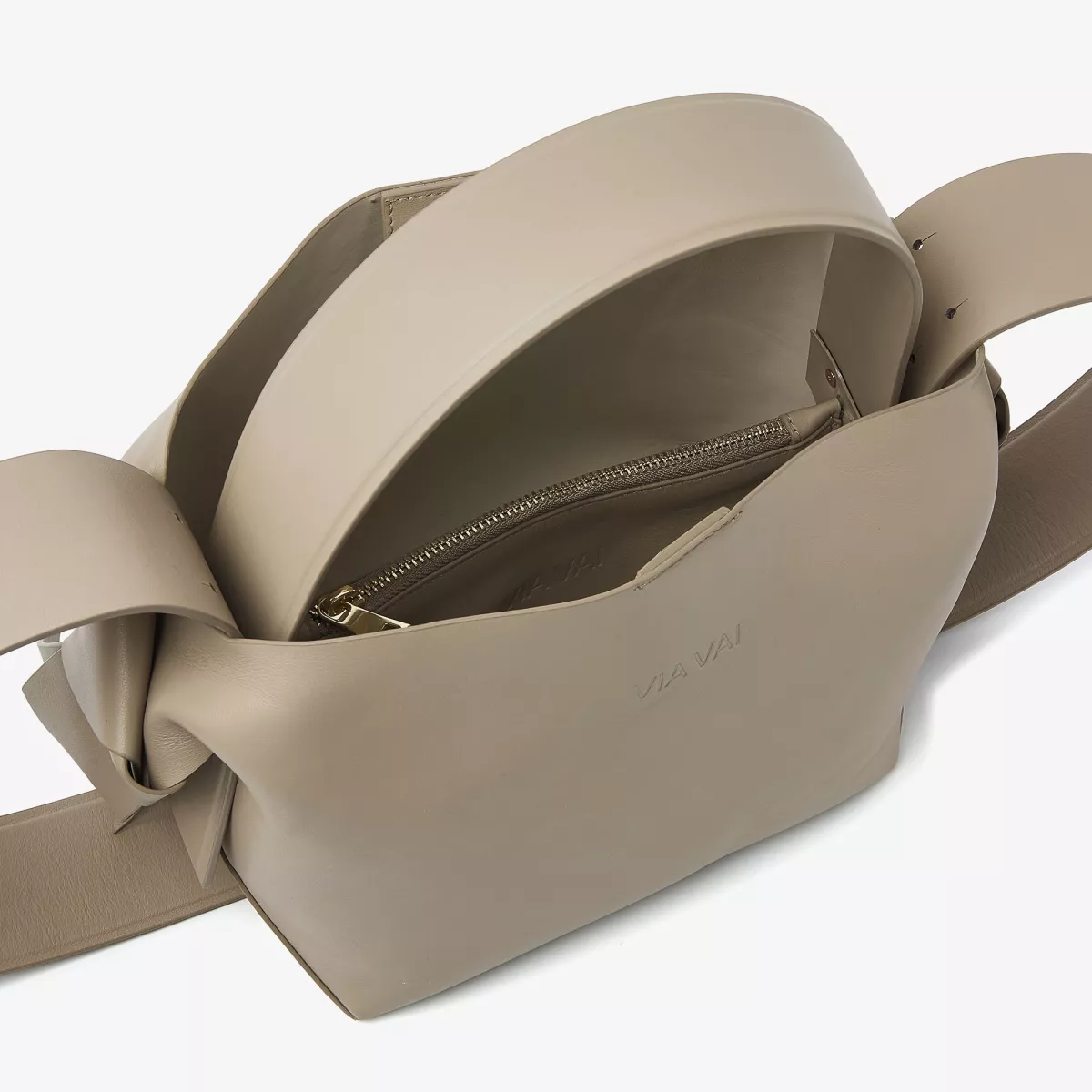 Te dragen als handtas en schoudertas Verstelbaar en afneembaar schouderhengsel Knoopdetail aan de zijkanten Sluiting door middel van magnetische drukknoop Binnenvak met rits Goudkleurige hardware VIA VAI logo op voorkant Gemaakt van hoogwaardig leer Handgemaakt in Europa
