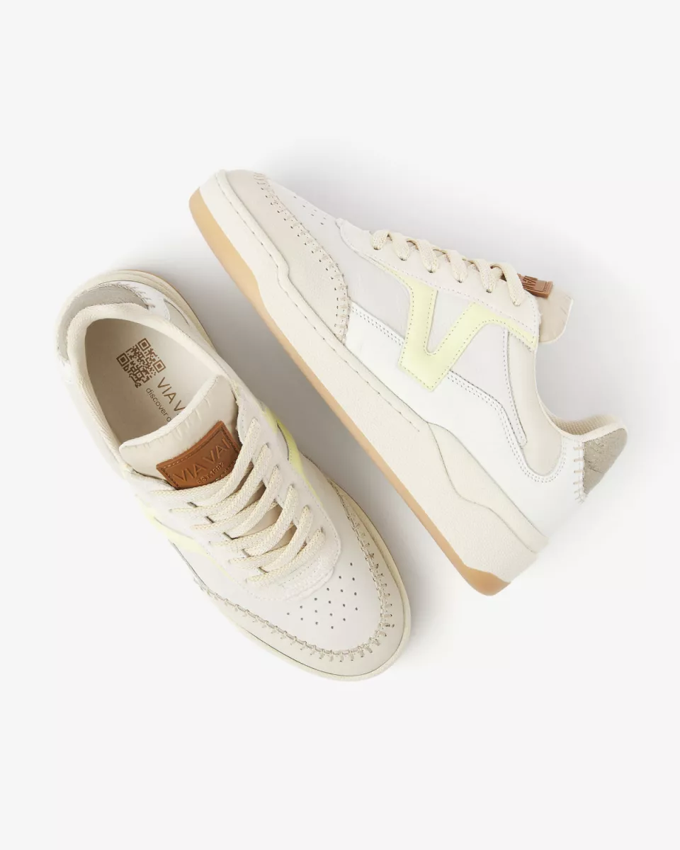 must-have in your spring wardrobe. The striking, handcrafted stitching, sporty perforations and yellow color accents give the beige sneakers a retro touch. The high-quality mesh lining ensures a soft and comfortable fit. Sam Olivia has it all.