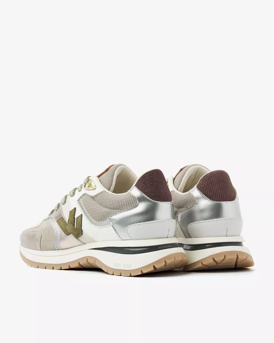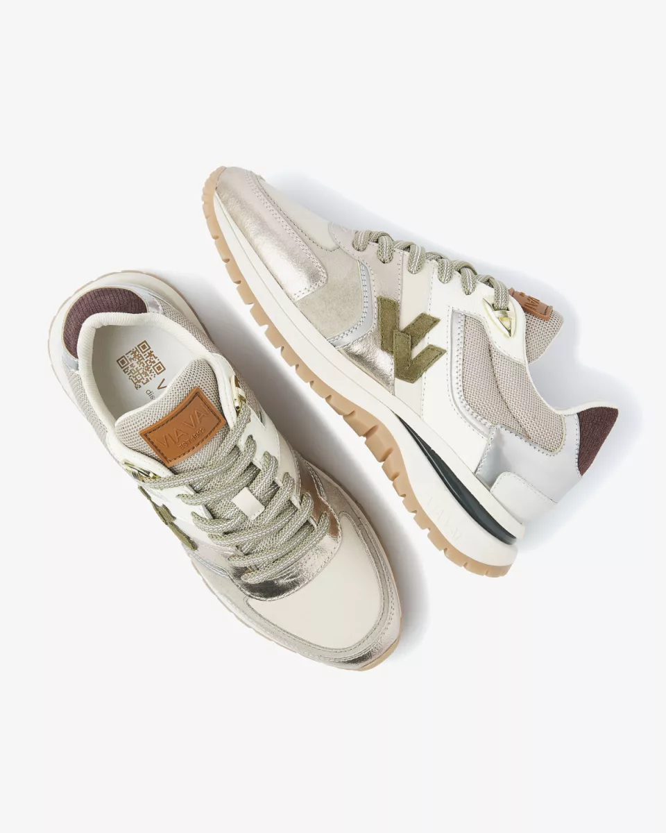 sneaker is geïnspireerd op de klassieke runner en gecombineerd met een verschillende luxe materialen voor een elegante look. Usher Davina heeft een sportieve zool met gekleurde inzet, wat zorgt voor een stoer contrast. Dankzij het foam – dat verwerkt is in de zool – loop je op wolkjes. De dubbele V, kenmerkend voor VIA VAI, maakt de sneaker af. Geloof ons: Usher Davina wordt