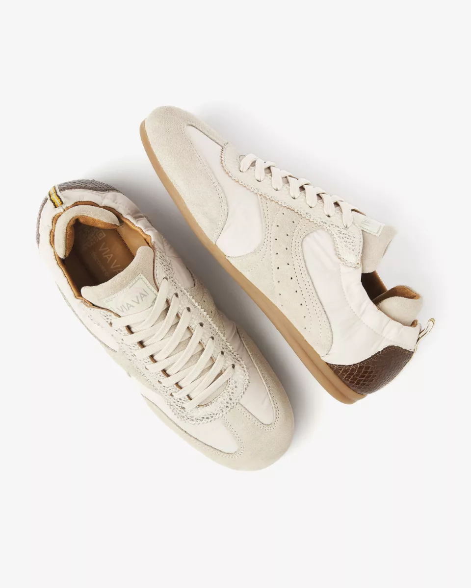 June Haylee laat zich moeiteloos mixen en matchen. Ga voor een casual look met een ballon jeans en oversized blouse of geef je outfit een vrouwelijke twist met een lange rok en een elegante top. Met een paar subtiele accessoires maak je deze look helemaal compleet en laat je de playful details van de sneaker echt opvallen.