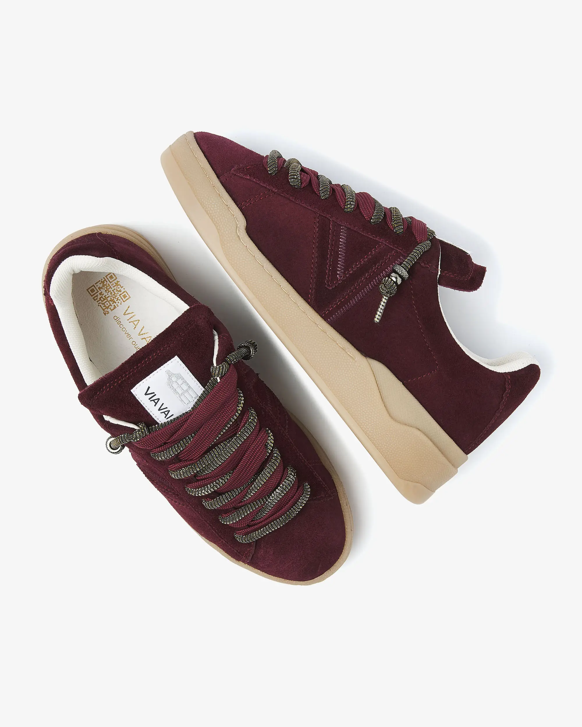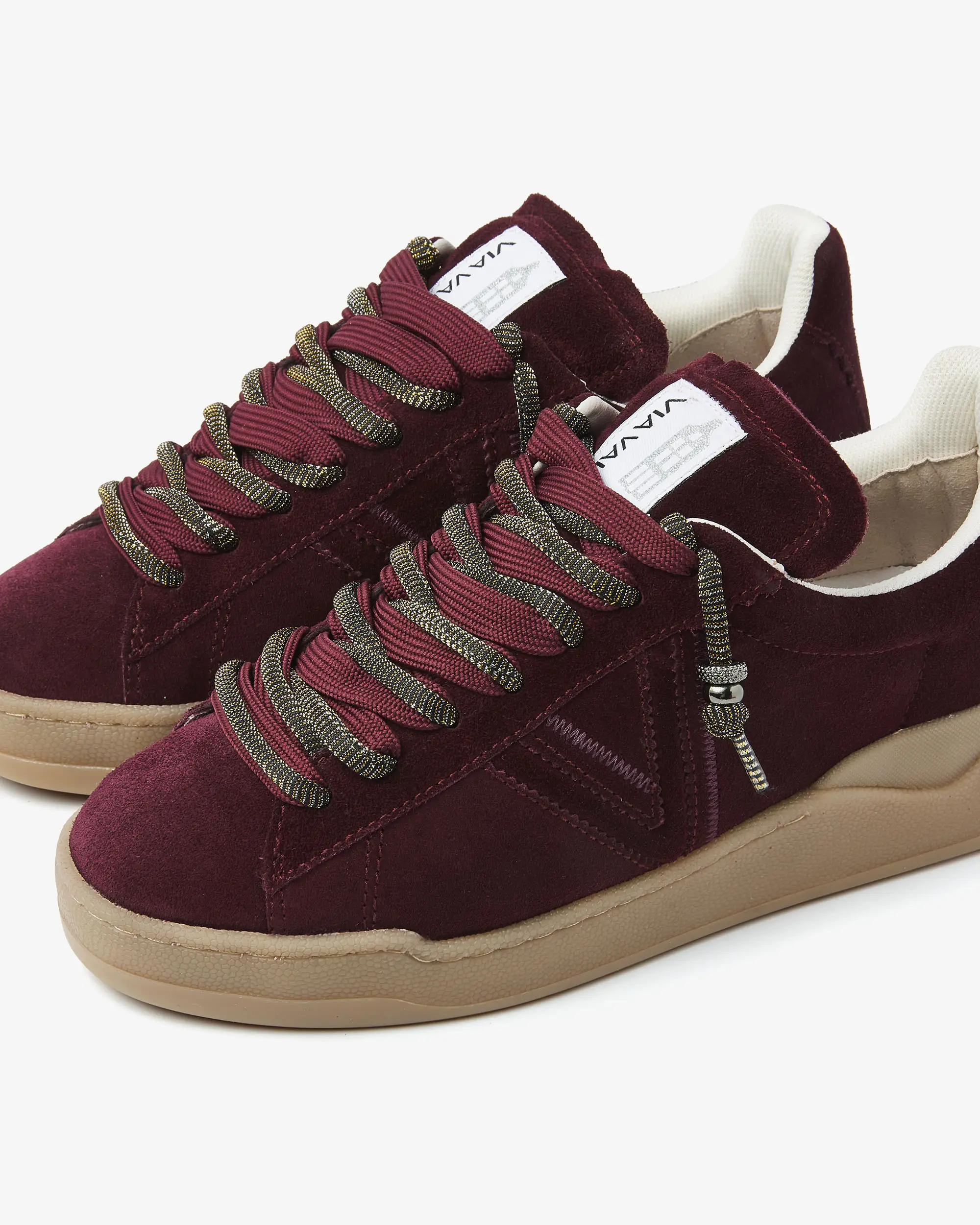Retro sneakers zijn hotter than ever en Sam Kyli is daar het bewijs van. Deze bordeaux sneakers hebben een retro vibe dankzij de padded details en decoratieve stiksels. De V op de zijkant is afgewerkt met karteltjes voor een speelse touch. De Sam Kyli sneakers zijn gemaakt van hoogwaardig suède en hebben een uitneembaar voetbed. De dubbele veter maakt de sneakers af.
