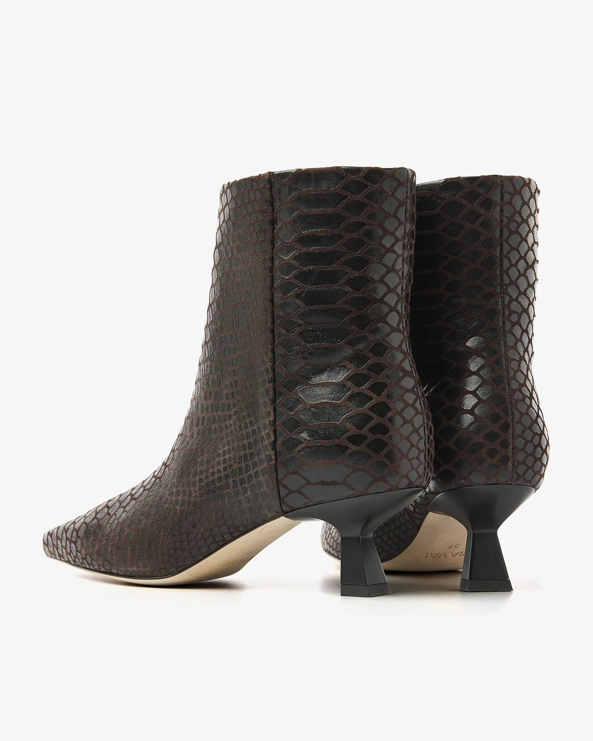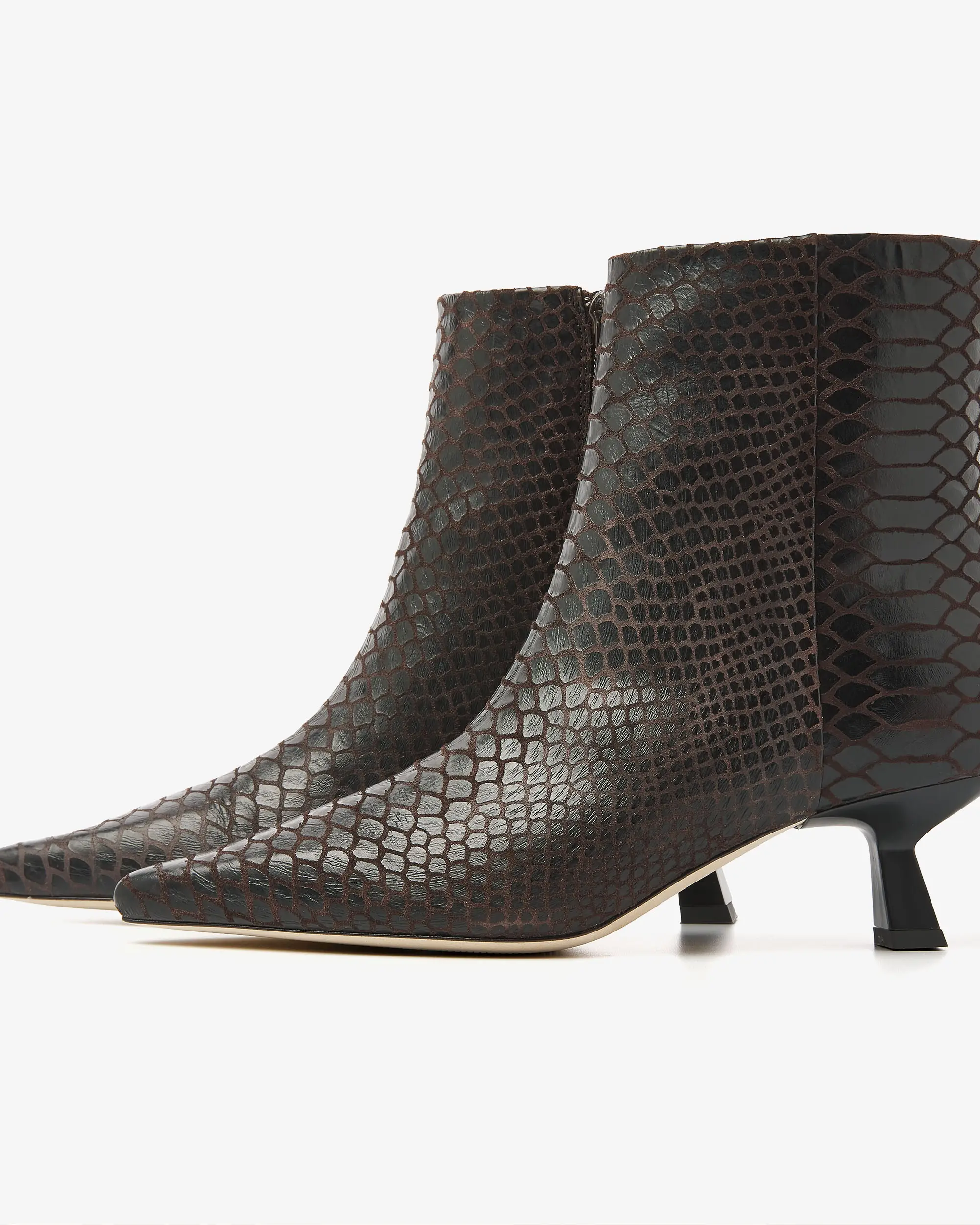 hoger niveau tilt. Met haar elegante kitten heel, spitse neus en stijlvolle reptielen reliëf is dit laarsje een ware eyecatcher. De decoratieve naad aan de zijkant en de handige rits aan de binnenzijde zorgen voor een perfecte mix van stijl en comfort.