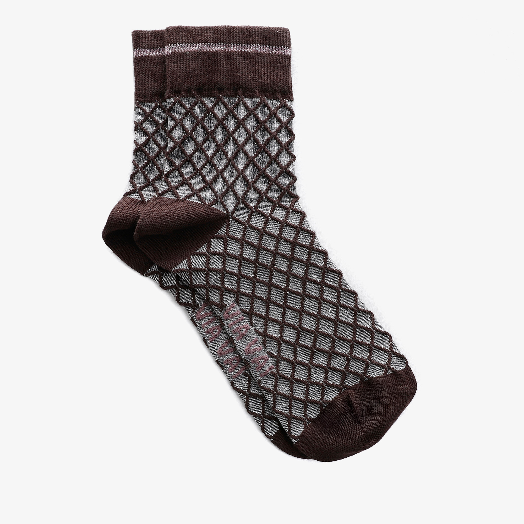 Bruine sokken met grijze en lichtroze accenten Over VIA VAI Zoeken Zoeken