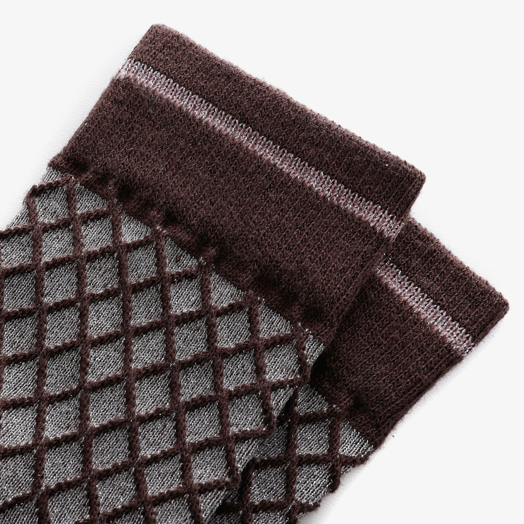 kleur: Bruine sokken met grijze en lichtroze accenten