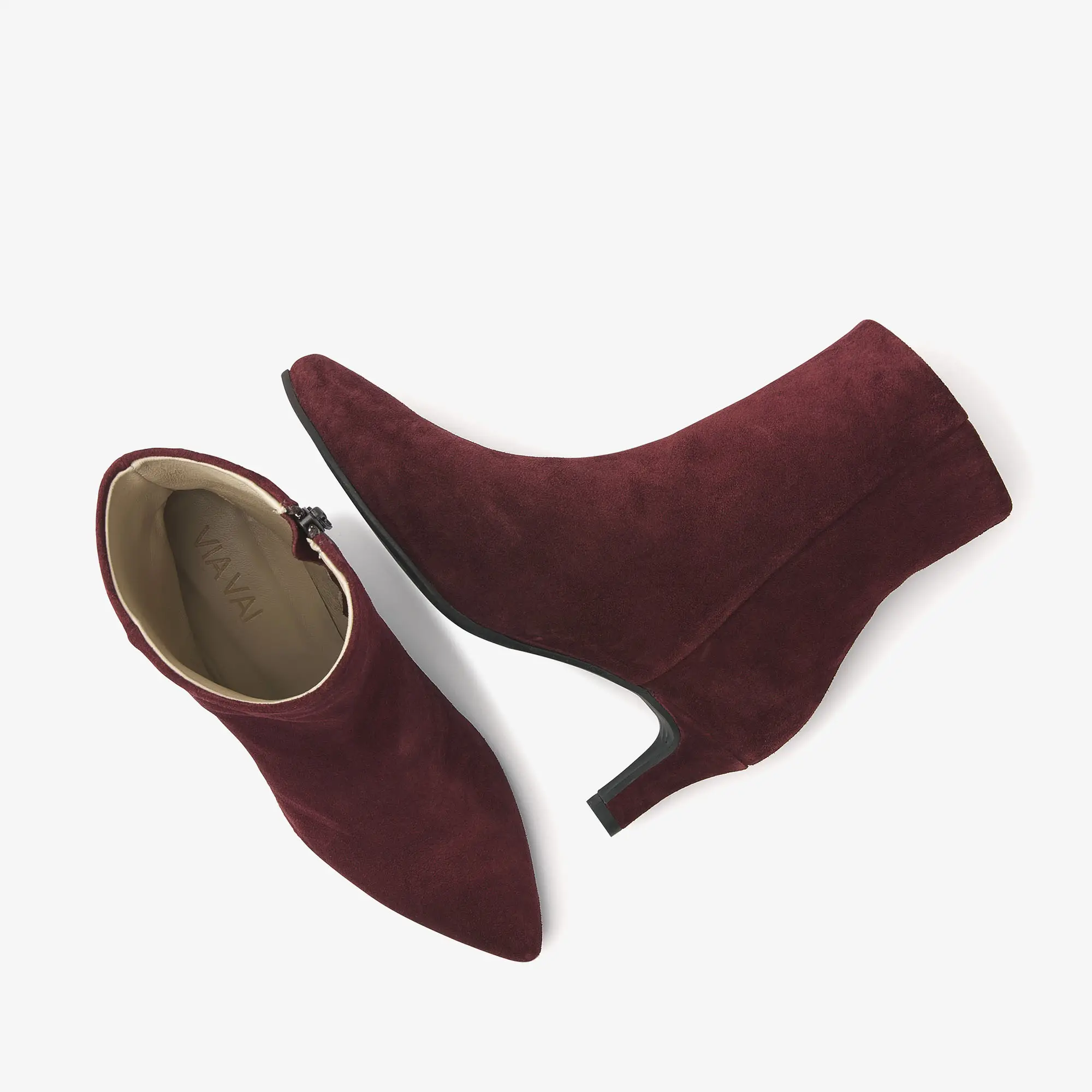 Vrouwelijk en stijlvol, dat is Noah Lou. Dit rode enkellaarsje is onze nieuwe favoriete toevoeging aan de VIA VAI collectie. Het zachte suède en de spitse neus geven dit laarsje het ultieme vrouwelijke gevoel. De kitten heel geeft je net dat beetje extra lengte. Noah Lou heeft een stijlvolle belijning aan de zijkant die de laarsjes afmaakt. Get ready to rock Noah Lou!