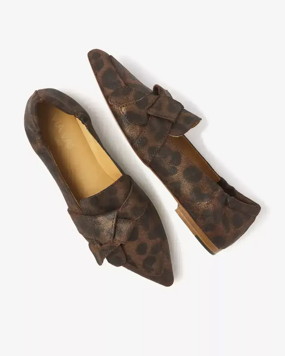 Wat deze loafers uniek maakt, is de elegante knoop op de wreef. In combinatie met de spitse neus zorgt dit voor een ultra-vrouwelijke look. De luipaardprint loafers zijn voorzien van een elastisch hielstuk en foamed voetbed voor extra comfort.