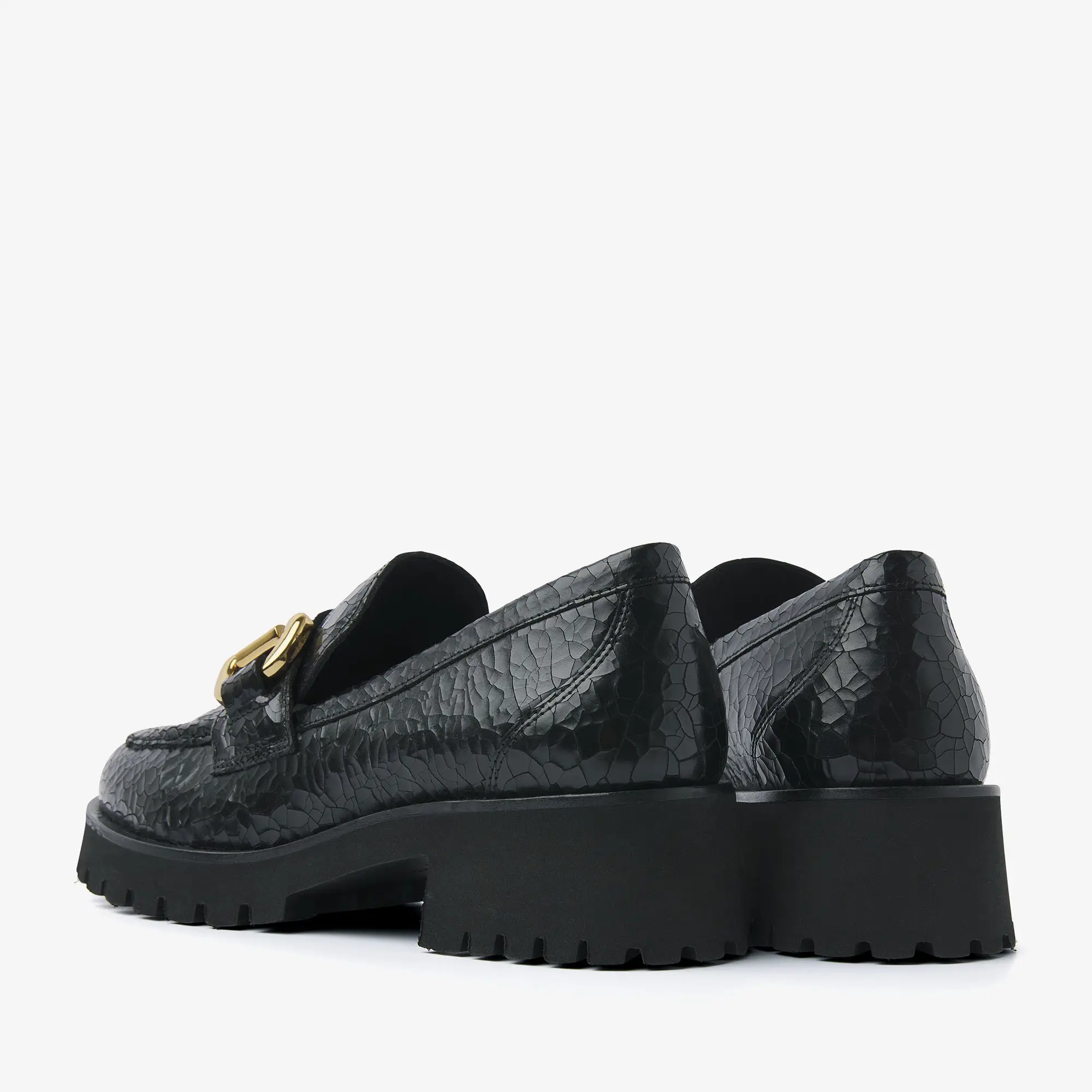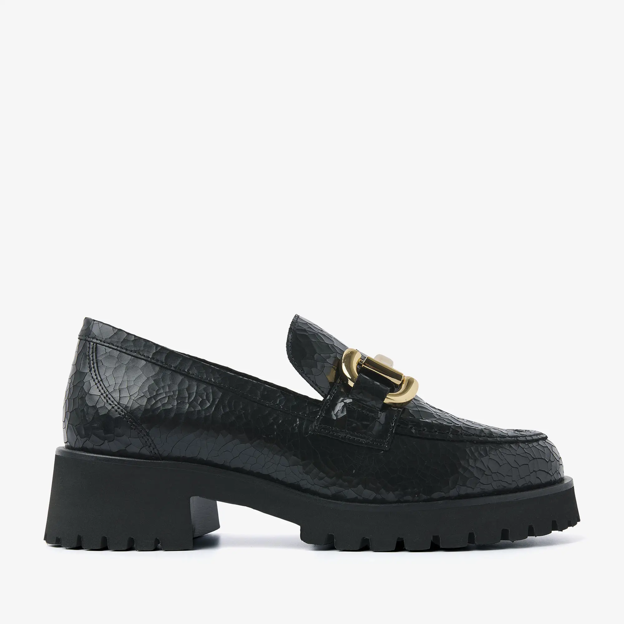 loafers met metalen detail op de wreef zijn de perfecte combinatie van tijdloos en edgy! Of je nu naar kantoor gaat of de stad in, de Jace Banks loafers tillen je outfit naar een hoger niveau. De opvallende buckle op de wreef is geïnspireerd op een bitje wat gebruikt wordt in de paardensport voor een old money aesthetic. De stoere, chunky zool geeft de zwarte loafer een eigenwijze touch.