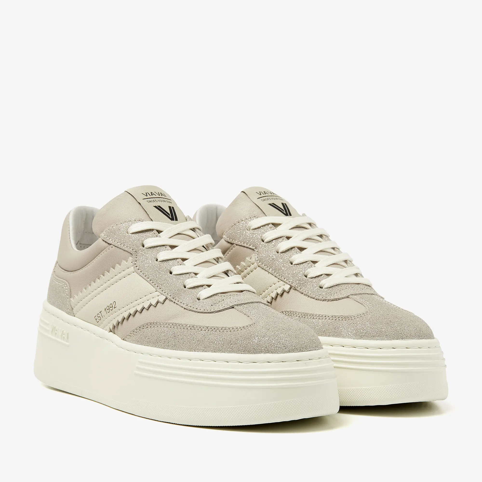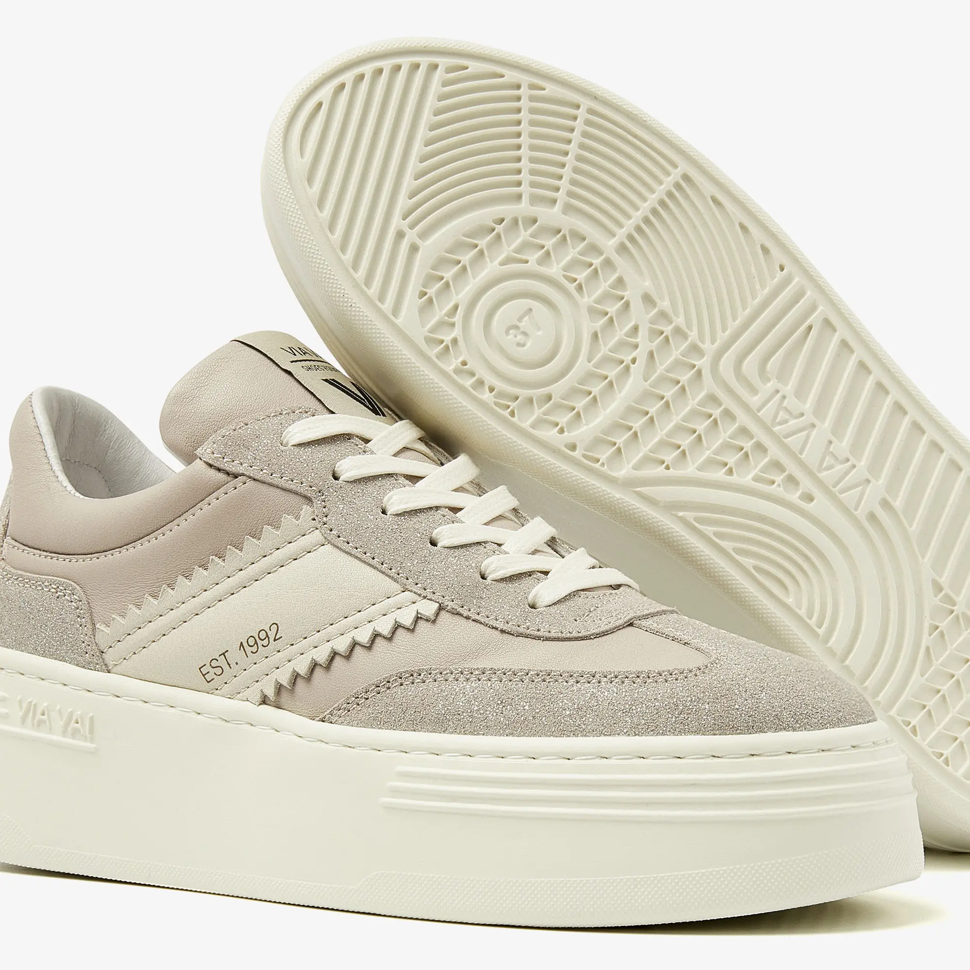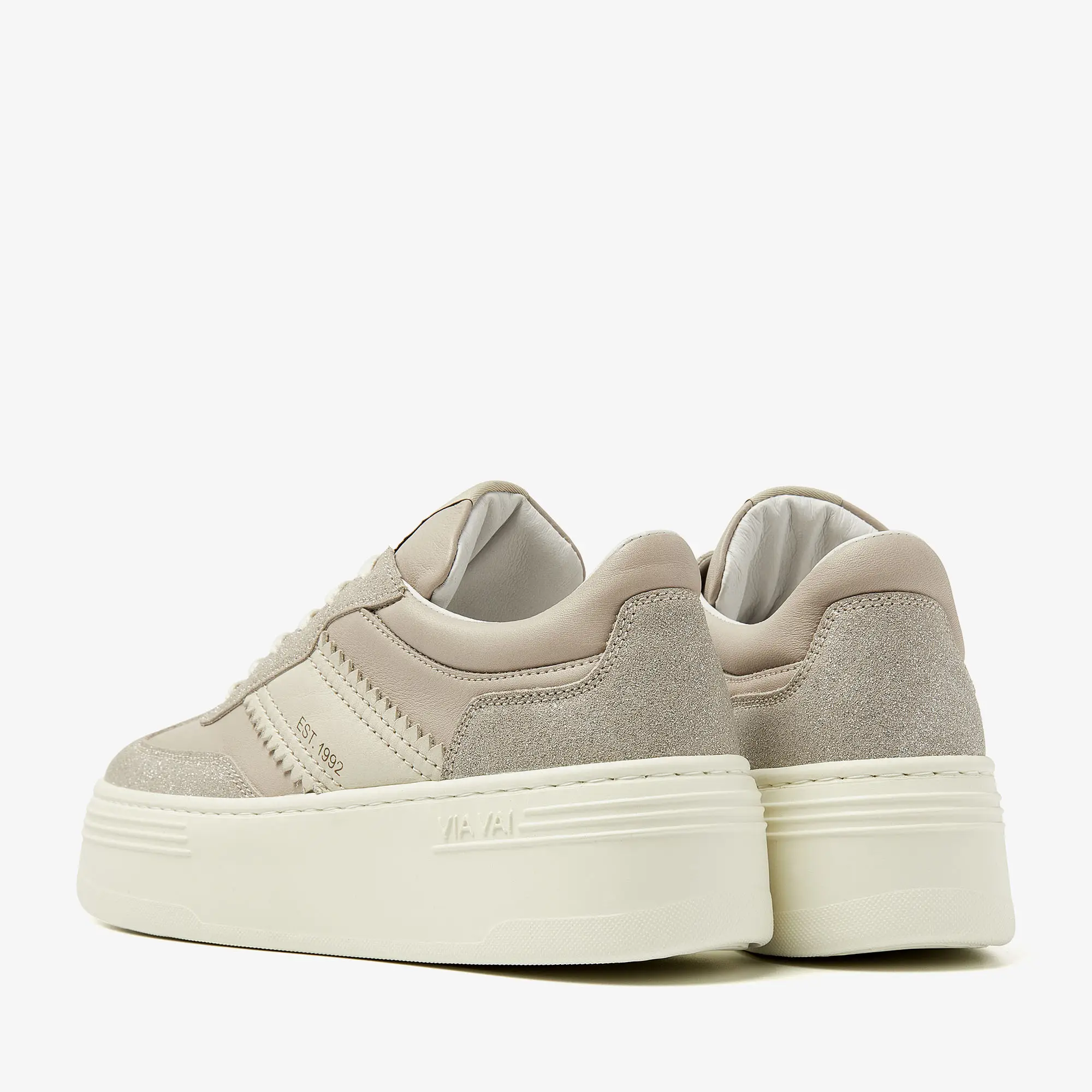 sneakers hebben een ultra-lichtgewicht platformzool van maar liefst 4,5 cm. Dat zorgt voor extra lengte én comfort. Het design is clean en tijdloos, maar door de verschillende unieke structuren in het leer krijgt Isa Romi een dynamische look. Sneakers to stand out with.