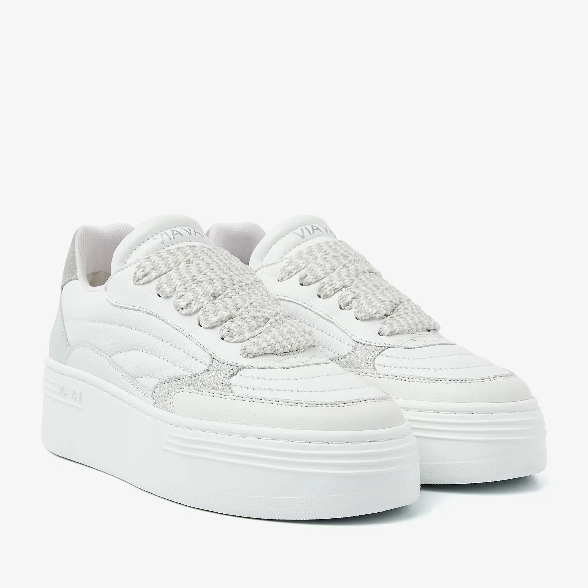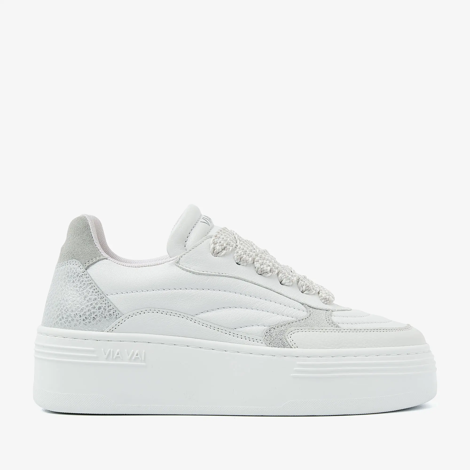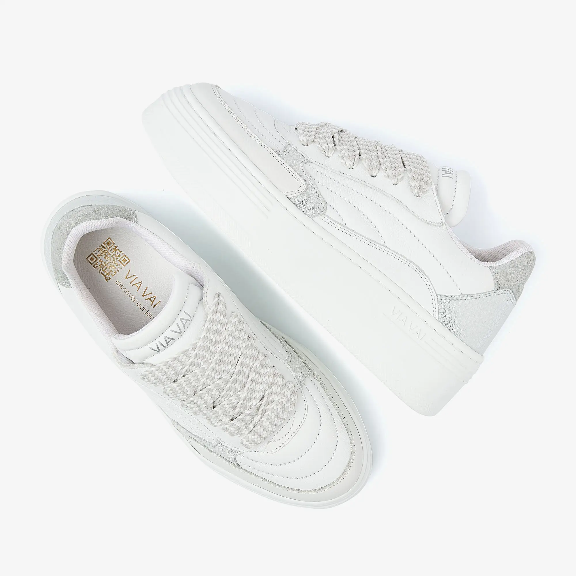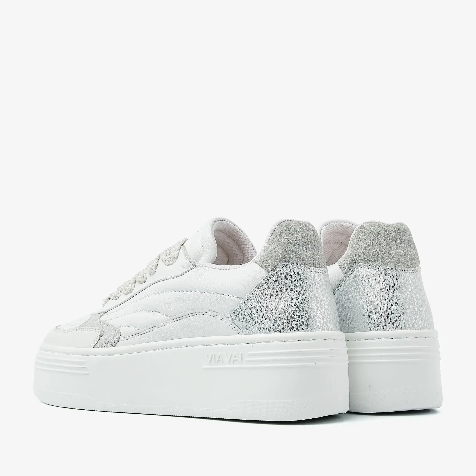 Sneaker lovers, attention! De Isa sneaker is een all-time favorite in de VIA VAI collectie en voor dit seizoen in een nieuw jasje gestoken. Deze witte sneakers met grijze en metallic accenten zijn de perfecte aanvulling op jouw wardrobe. Het unieke veterwerk en de speelse combinatie van materialen en kleuren maken deze sneakers extra speciaal. Door de lichtgewicht platformzool loop jij er ook nog eens zo op weg!