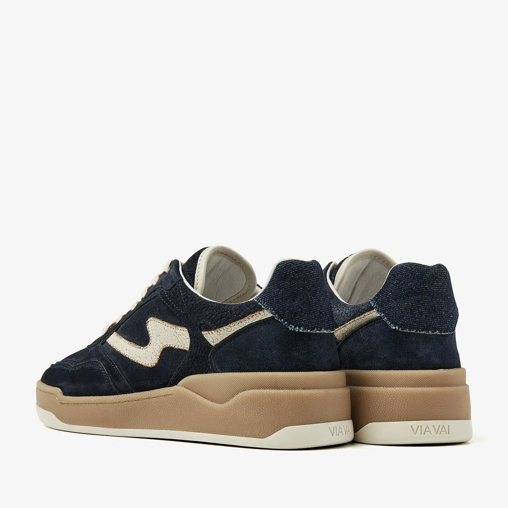 Retro vibes all-over! Deze blauwe sneakers met denim details hebben een sportieve look & feel. Dat zie je onder andere aan de perforaties op de neus en dynamische belijningen. De combinatie van verschillende kleuren, materialen en texturen geeft Sam Levi een zacht randje met een vrouwelijke touch. Eén blik op deze sneakers en jouw schoenenhart gaat sneller kloppen!