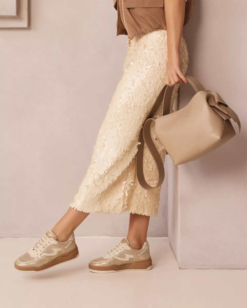 Sam Levi sneakers combineren Mix & match Sam Levi met oversized kledingstukken, zoals een losvallende linnen broek of satijnen rok. Maak je outfit af met een opgeknoopte witte blouse en een baseball jacket voor de ultieme retro-look!